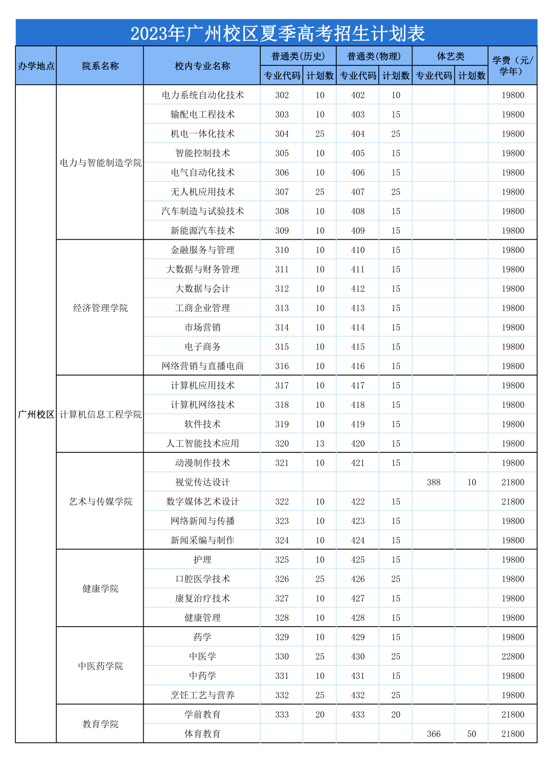 2023年夏季招生专业新增美术教育、测绘地理信息技术、机电一体化技术、无人机应用技术、口腔医学技术、烹饪工艺与营养、现代家政服务与管理等7个专业。
