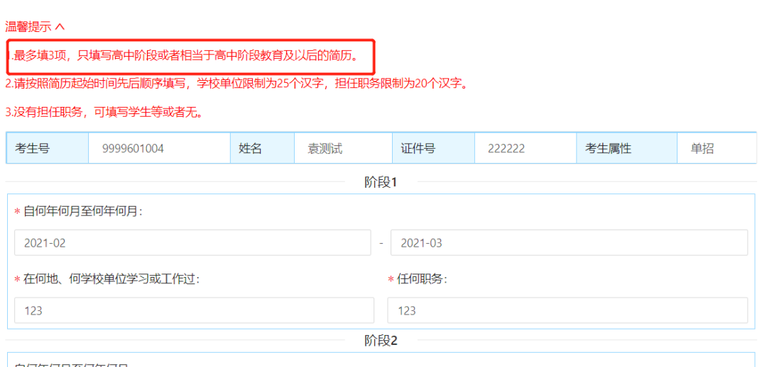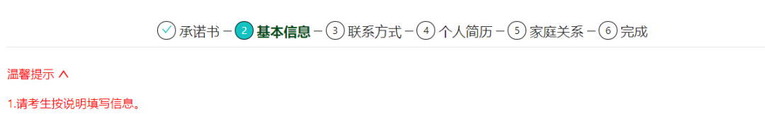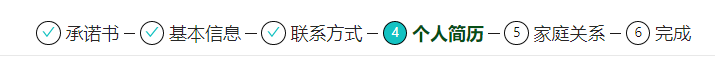 五、【填写个人简历】填写联系方式后,点击“下一步”按钮进入“填写个人简历”模块。