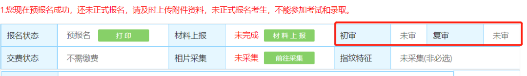【未审核】考生完成预报名且材料上报为已上传、已采集相片,院校才进行资格审核。
