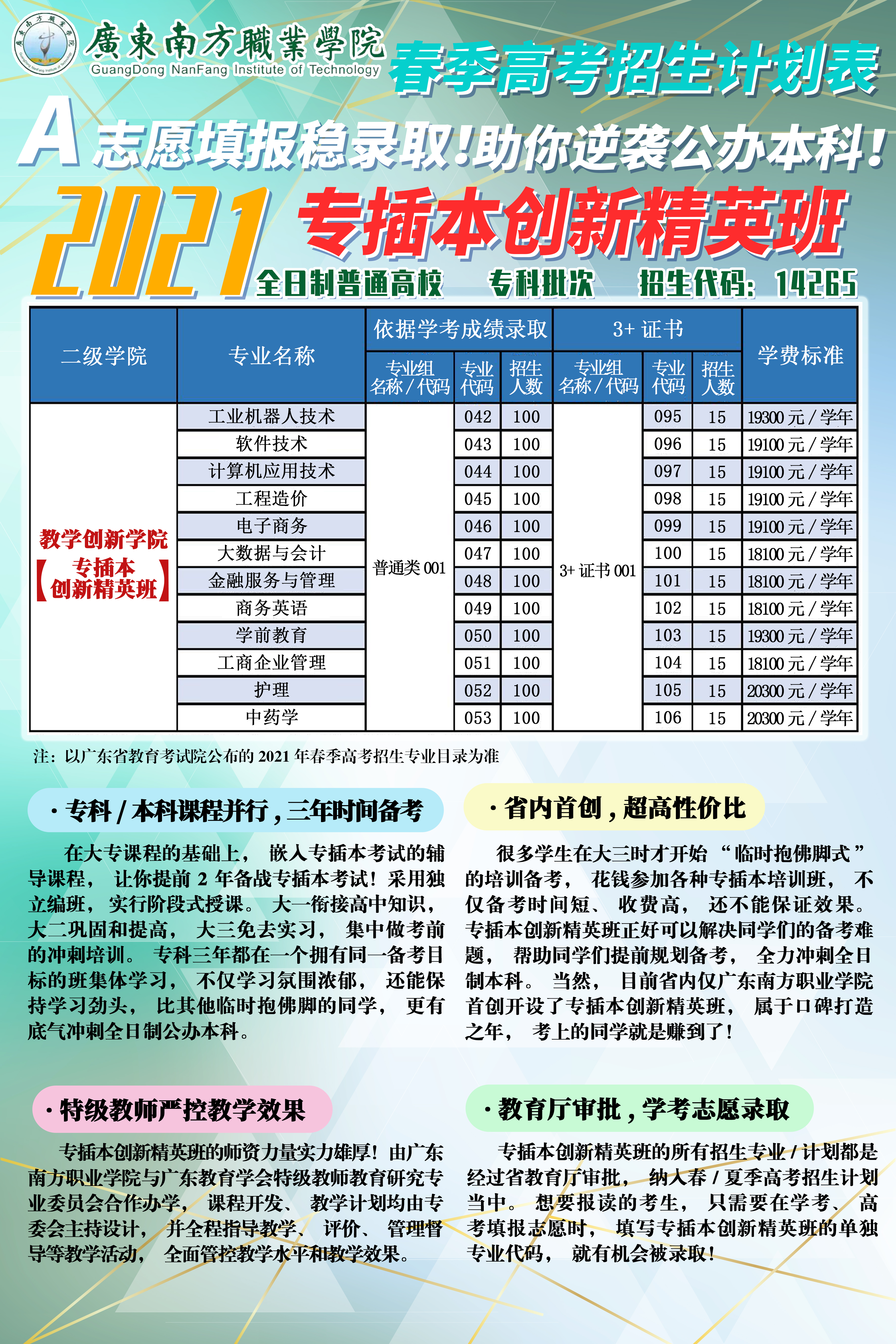 广东南方职业学院2021年专插本创新精英班