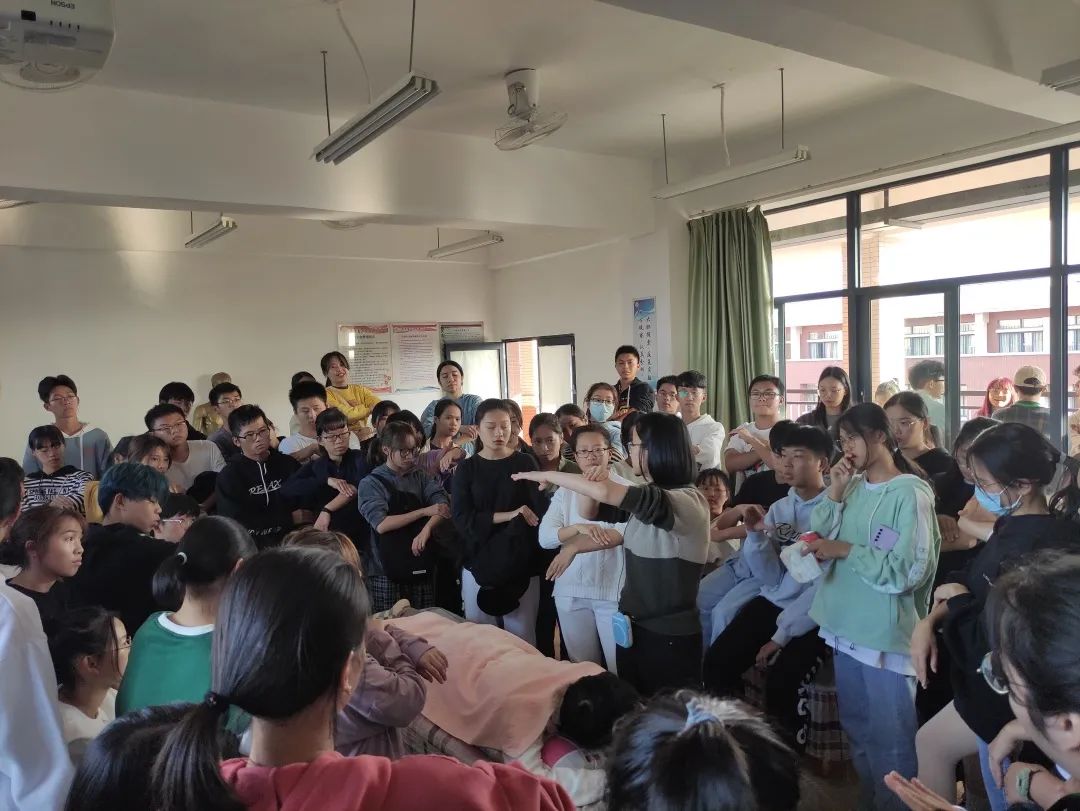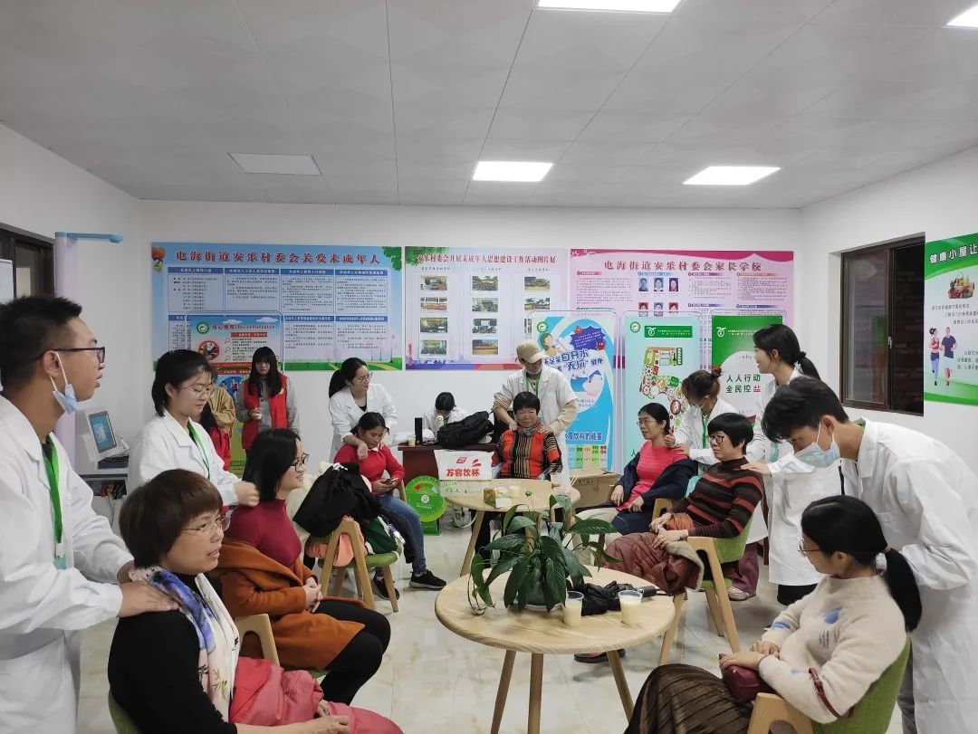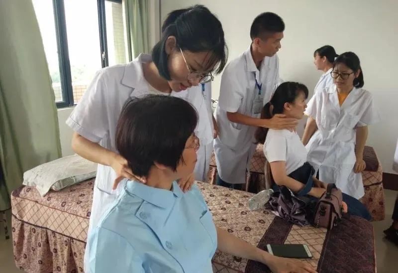 义诊活动中,学生运用推拿手法实践