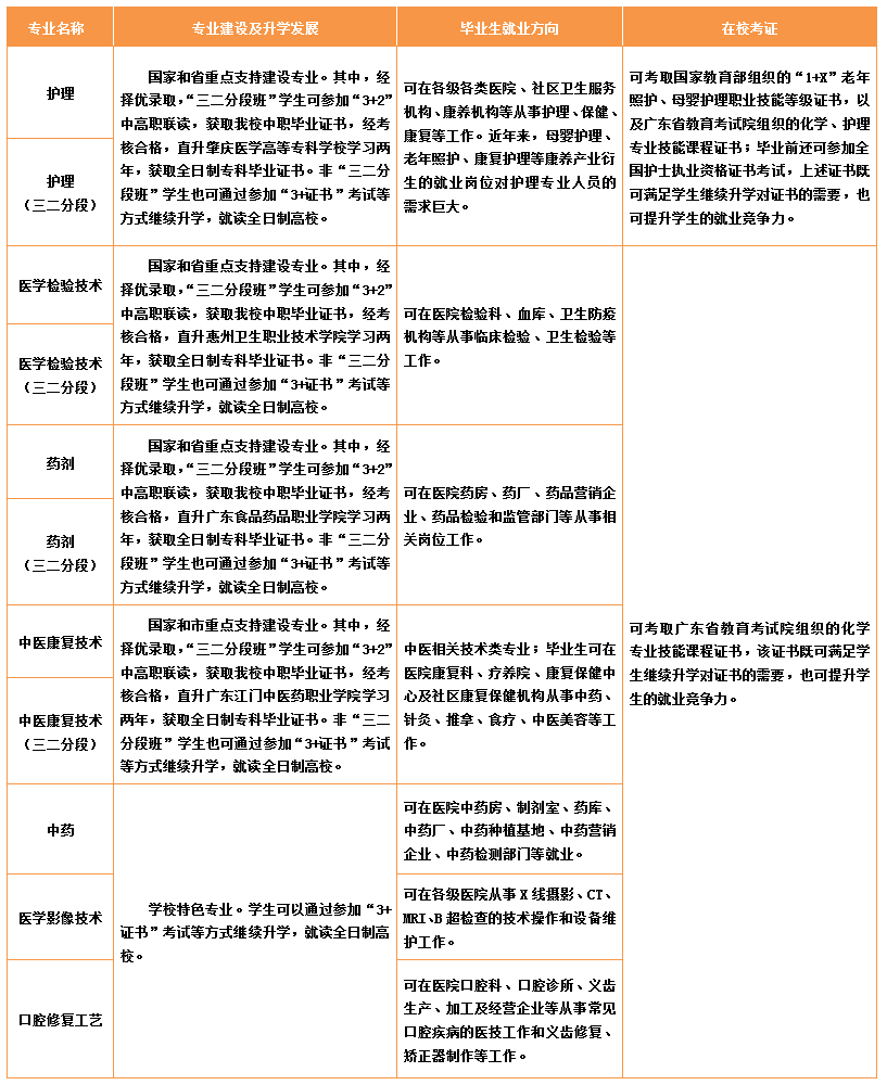 1.中职毕业当年参加广东省普通高等学校招收中职毕业生统一考试(简称“3+证书”考试), 就读全日制专科、本科院校。