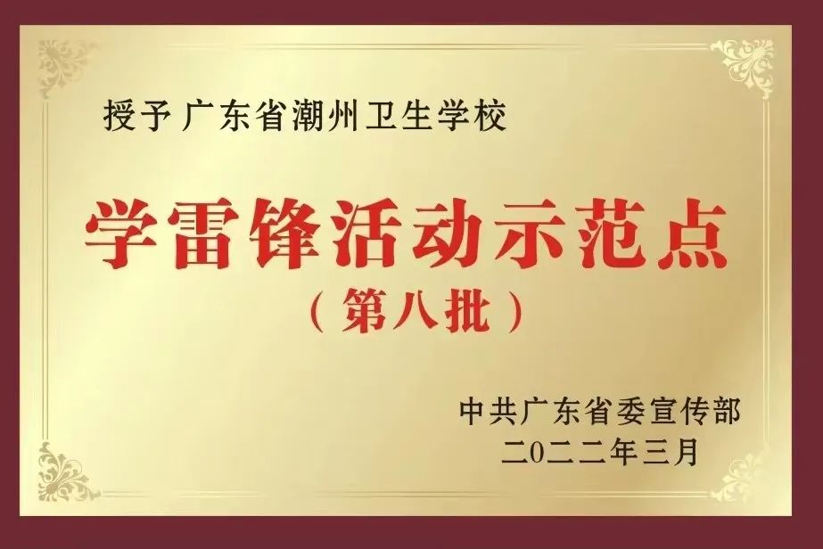 1.学校品牌:全省2所医药卫生类“国家中职教育改革发展示范学校”之一,也是目前潮汕地区各医药卫生学校中唯一一所国家级重点中等职业学校,是广东省文明单位、广东省文明校园、潮州市基层党建示范点、广东省学雷锋活动示范点、潮州市“四优学校”创建示范单位、潮州市高中教学质量先进单位。