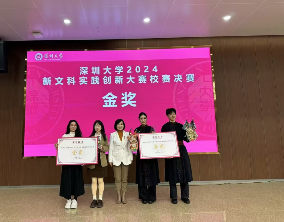 2024年12月20日至22日,首届大学生新文科实践创新大赛全国决赛在山东济南举行。在本次全国总决赛中深圳大学表现优异,共获得金奖2项银奖1项铜奖4项优秀奖1项,金奖总数并列全国第十,并列广东省第一,深圳市第一。同时,深圳大学因工作表现突出获得组委会颁发“高校优秀组织单位奖”;深圳大学付业林老师获颁“优秀指导教师奖”。