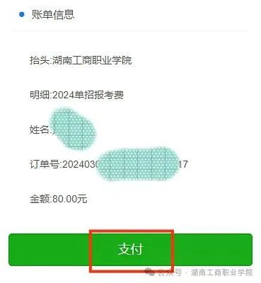 一志愿填报湖南工商职业学院的考生,通过微信支付方式自助缴纳报考费80元。