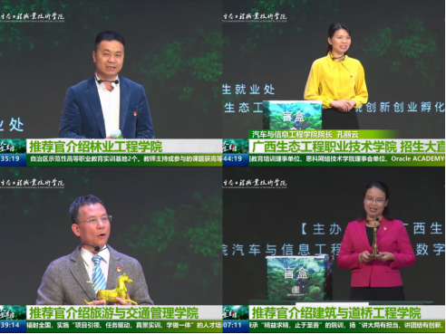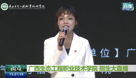 最后在直播中向广大考生发出诚挚的邀请:“预祝同学们金榜题名!让你我一起加入广西生态工程职业技术学院,共建生态文明新时代,朝着实现中华民族伟大复兴的目标,奋勇前进!”
