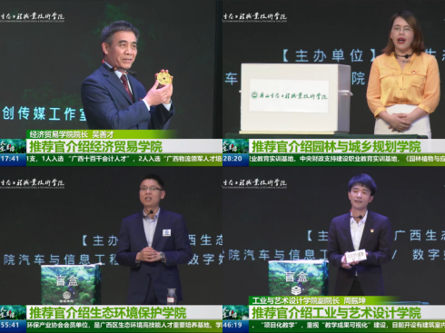 活动第二流程:二级学院推荐官致推荐词。林业工程学院、汽车与信息工程学院、生态环境保护学院、建筑与道桥工程学院、经济贸易学院、园林与城乡规划学院、旅游与交通管理学院、工业与艺术设计学院8个二级学院推荐官依次为大家介绍本学院的专业特色及优势,并连线各二级学院实训基地,带大家云探我校优异的实训设备及优秀的实训条件。