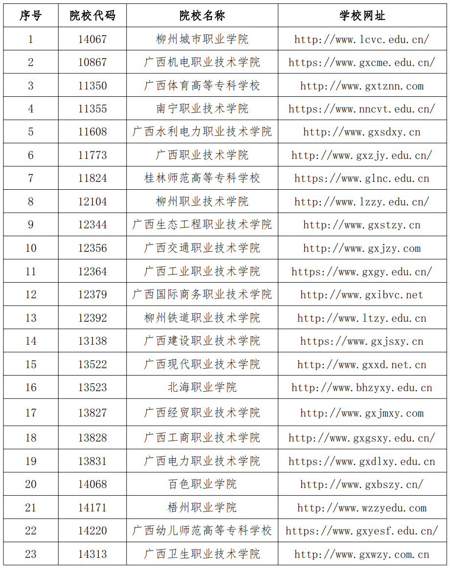 广西公办高职高专院校招生联盟2023年高职
