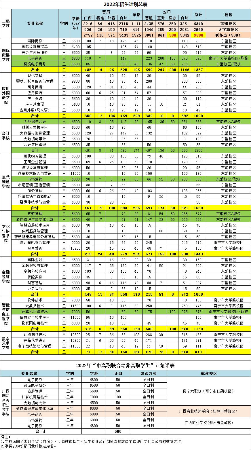 2022年招生计划总表