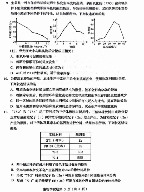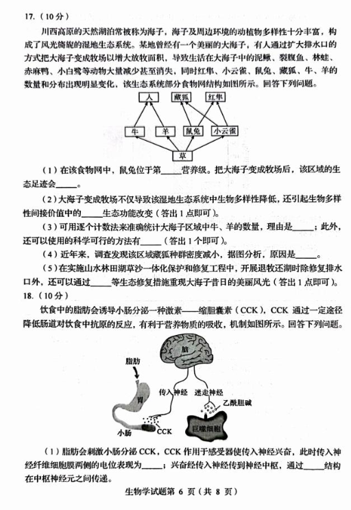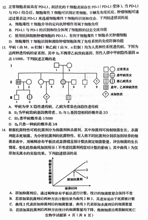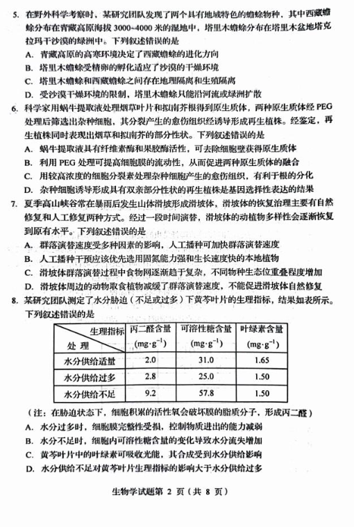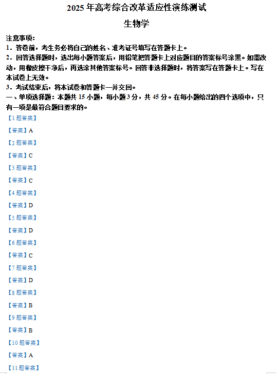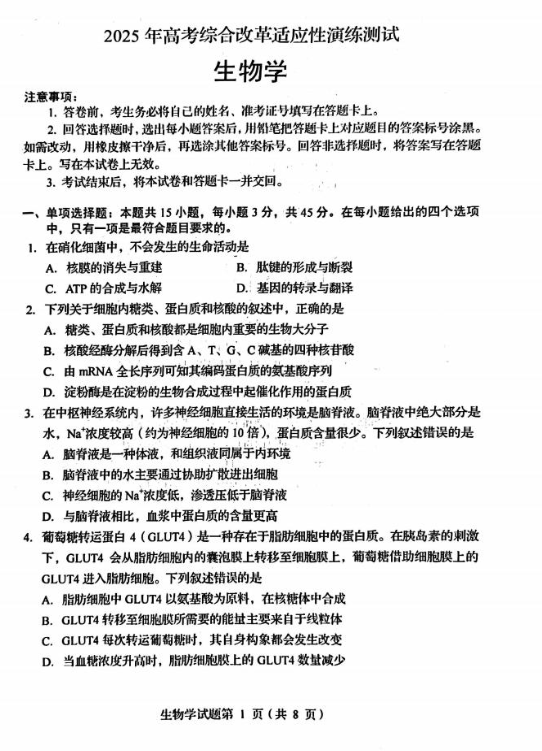 四川2025年高考综合改革适应性演练生物学试题及答案