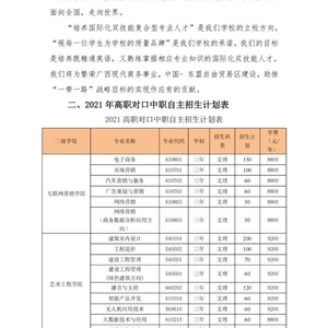 广西培贤国际职业学院 2021年高职对口中职自主招生简章