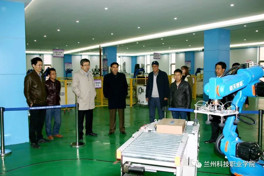 兰州科技职业学院工业机器人实训中心由中中国航天科技集团公司第九研究院十六研究所承建,是该所筛选确定的工业机器人应用型人才培养示范项目,机器人型号涵盖了工业机器人应用领域最典型的搬运、抛光打磨、装配、弧焊和点焊工作站等。万彦辉一行仔细考察了新能源汽车检测与维修、生命科学馆(基础医学实训中心),以及机器人托盘流水线、物品盒流水线、码垛机立库系统及自动焊接机器人工作站等各分系统,并就深化校企合作与兰州科技职业学院领导进行洽谈。