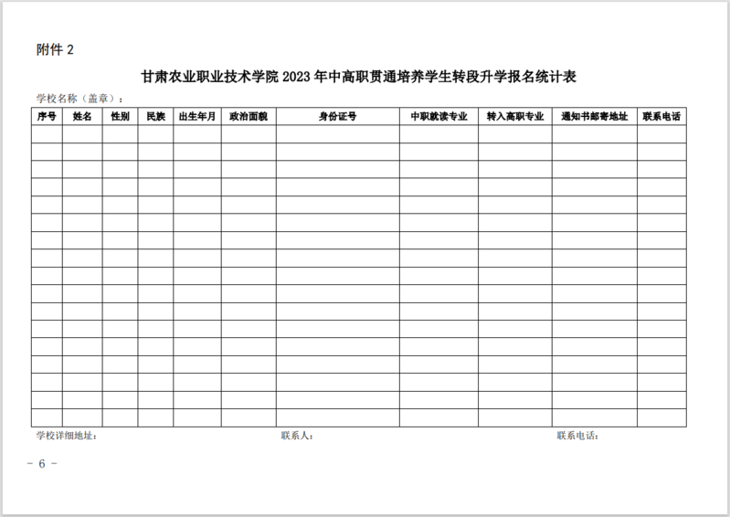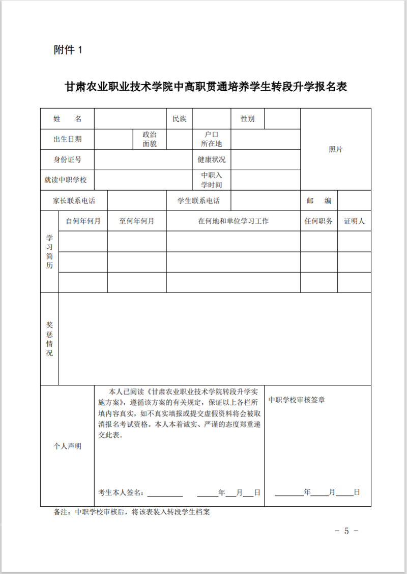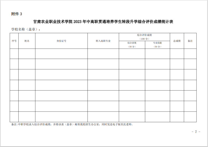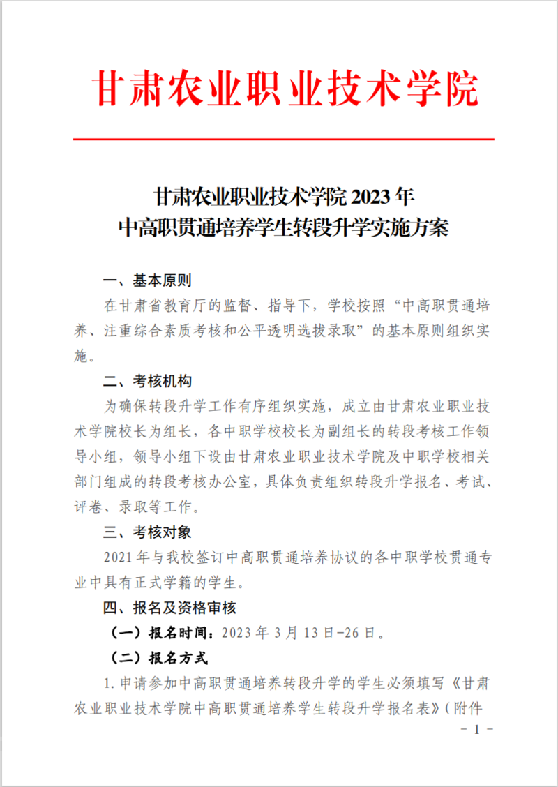 附件1.甘肃农业职业技术学院中高职贯通培养学生转段升学报名表.docx附件2.甘肃农业职业技术学院2023年中高职贯通培养学生转段升学报名统计表.xlsx附件3.甘肃农业职业技术学院2023年中高职贯通培养学生转段升学综合评价成绩统计表.docx