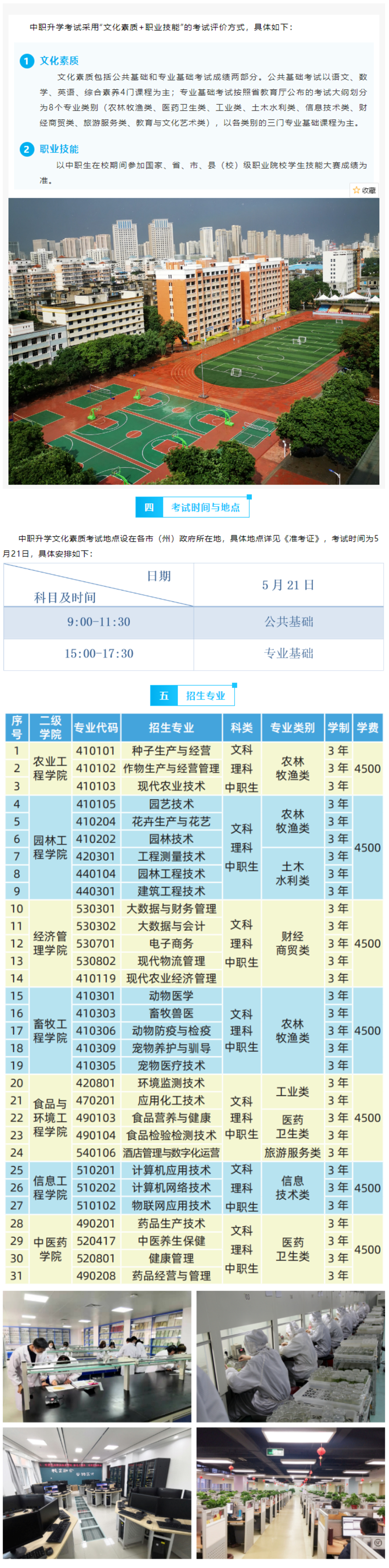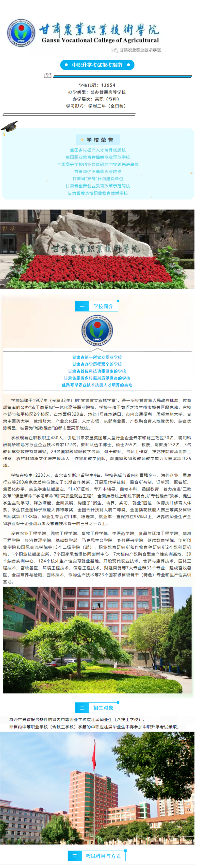 甘肃农业职业技术学院2022年中职升学考试报考指南