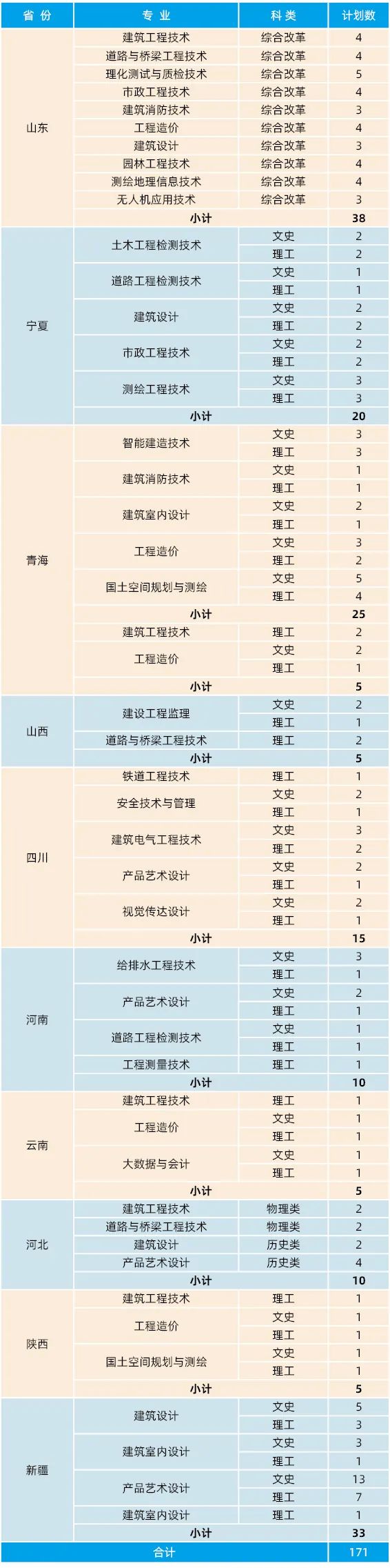 2023年普通高考省外招生计划一览表