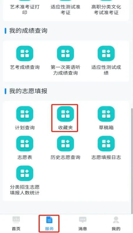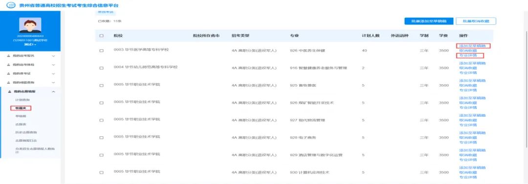 方式1:通过【服务】→【我的志愿填报】→【收藏夹】进入收藏夹页面,在志愿下方点击【添加至草稿箱】按钮,可将该条计划添加至草稿箱。