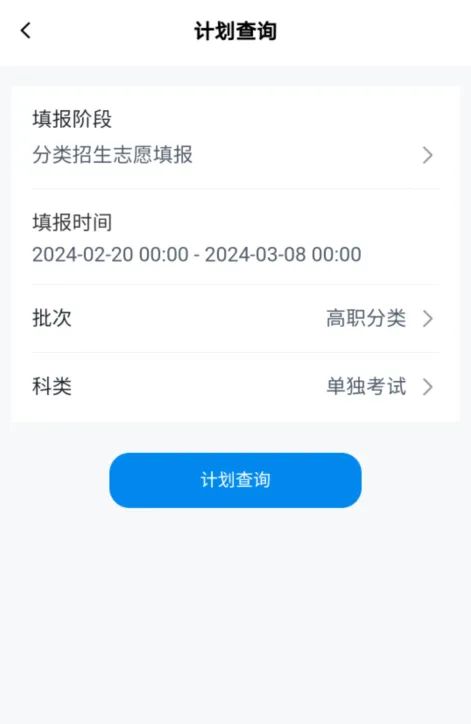 登录系统后,通过系统左侧的【我的志愿填报】→【计划查询】,查询可填报的院校专业计划。
