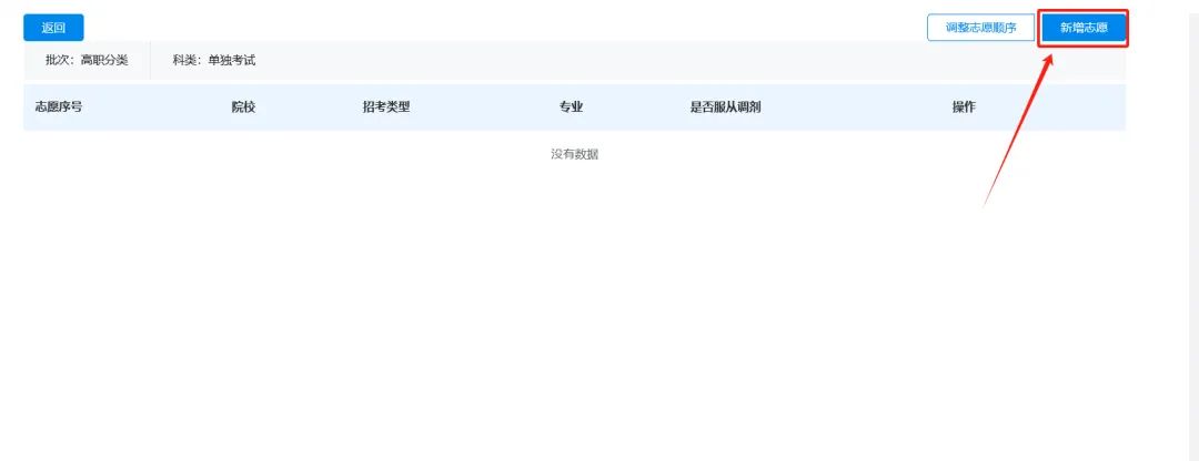 如草稿已存在1个院校志愿,则不能添加其它院校志愿。如需添加其它院校志愿,须先清空原有院校志愿。