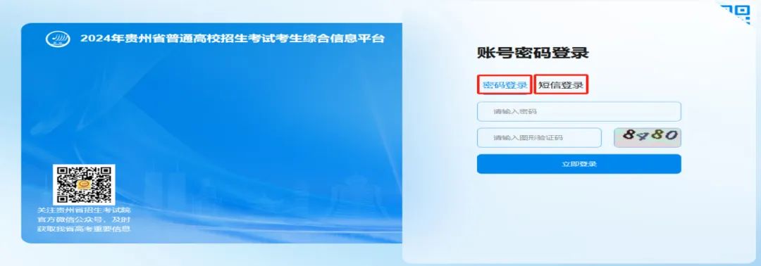 输入考生号/证件号,在登录页面中选择“密码登录”或“短信登录”。