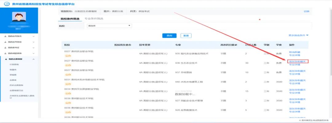 考生可将感兴趣的院校专业添加至“收藏夹”进行收藏。