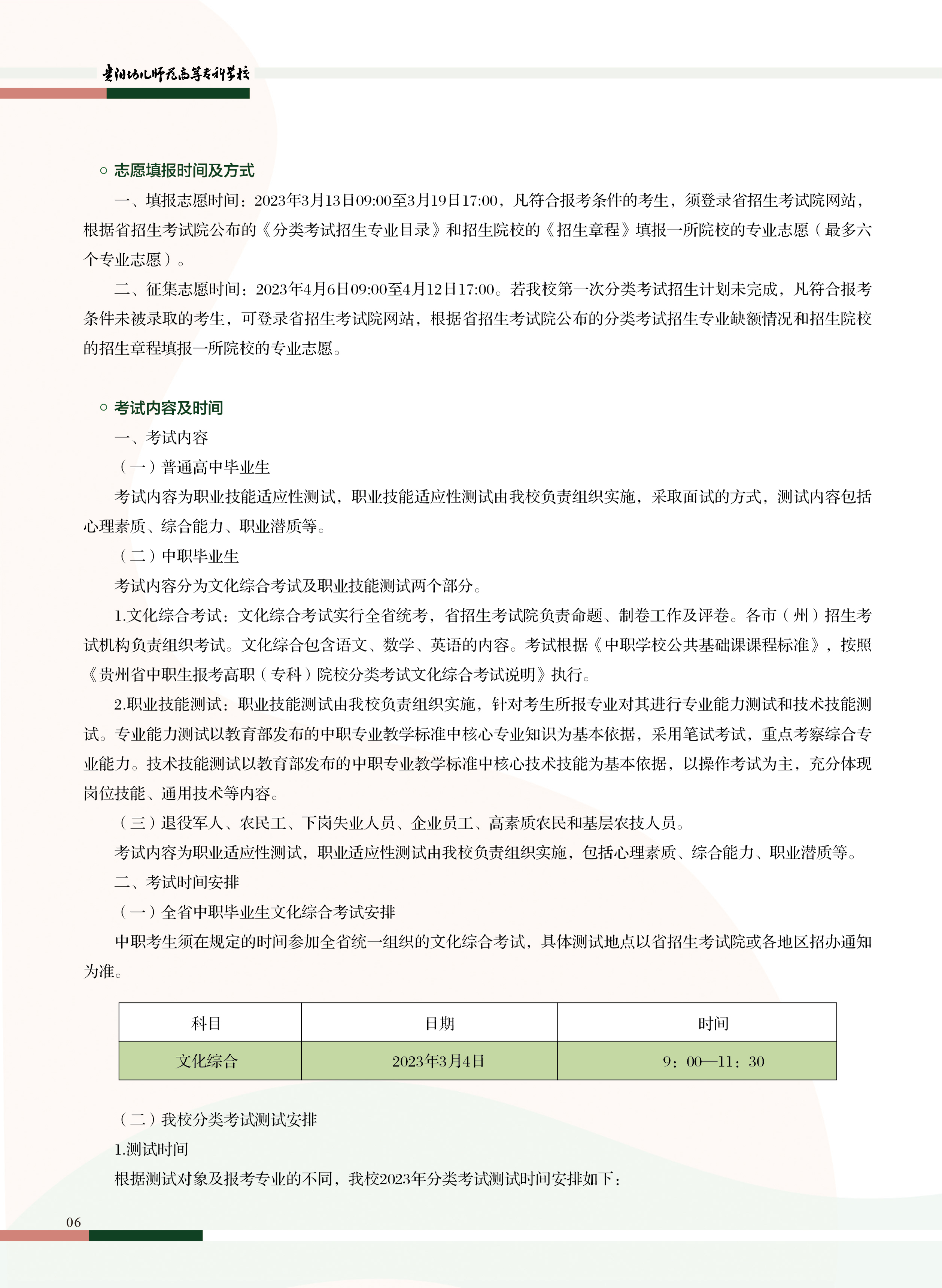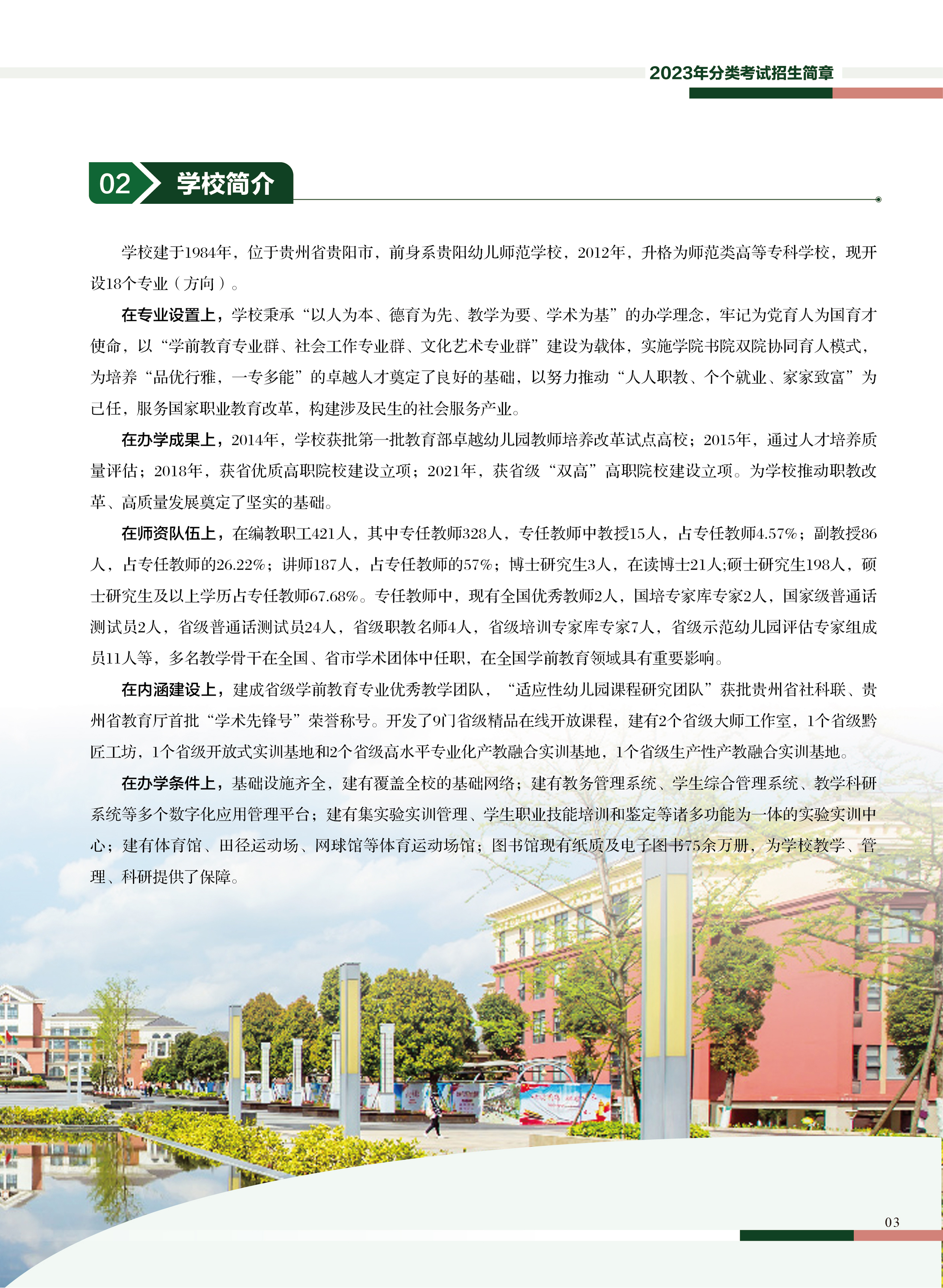 贵阳幼儿师范高等专科学校2023年分类考试招生简章