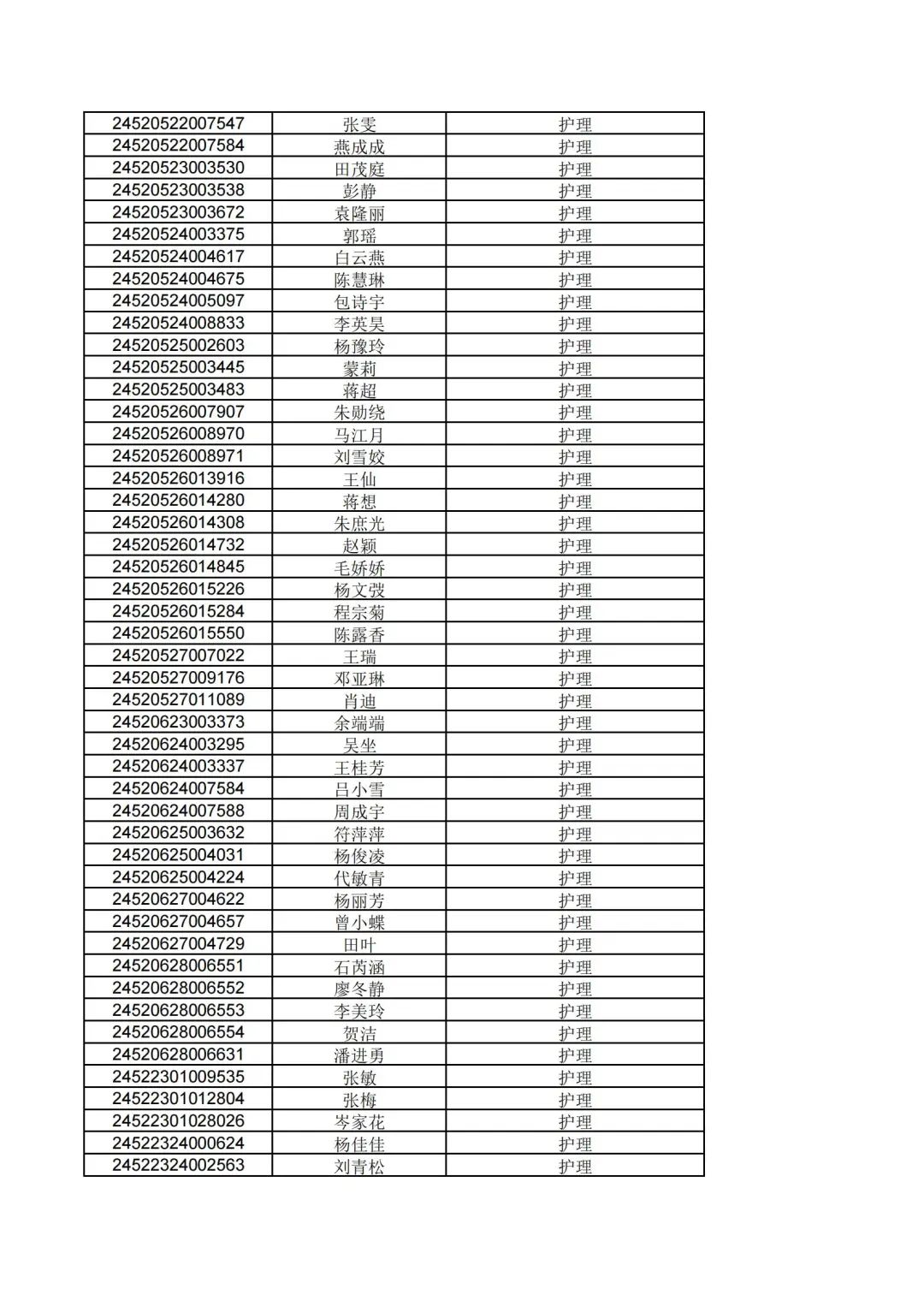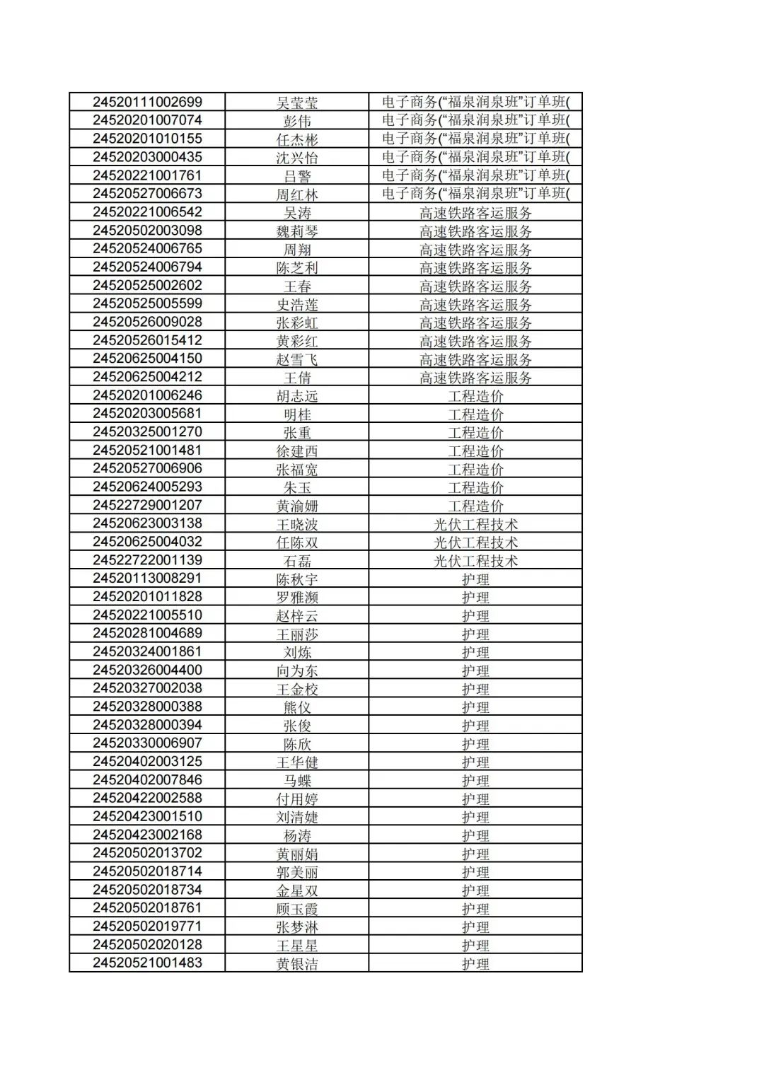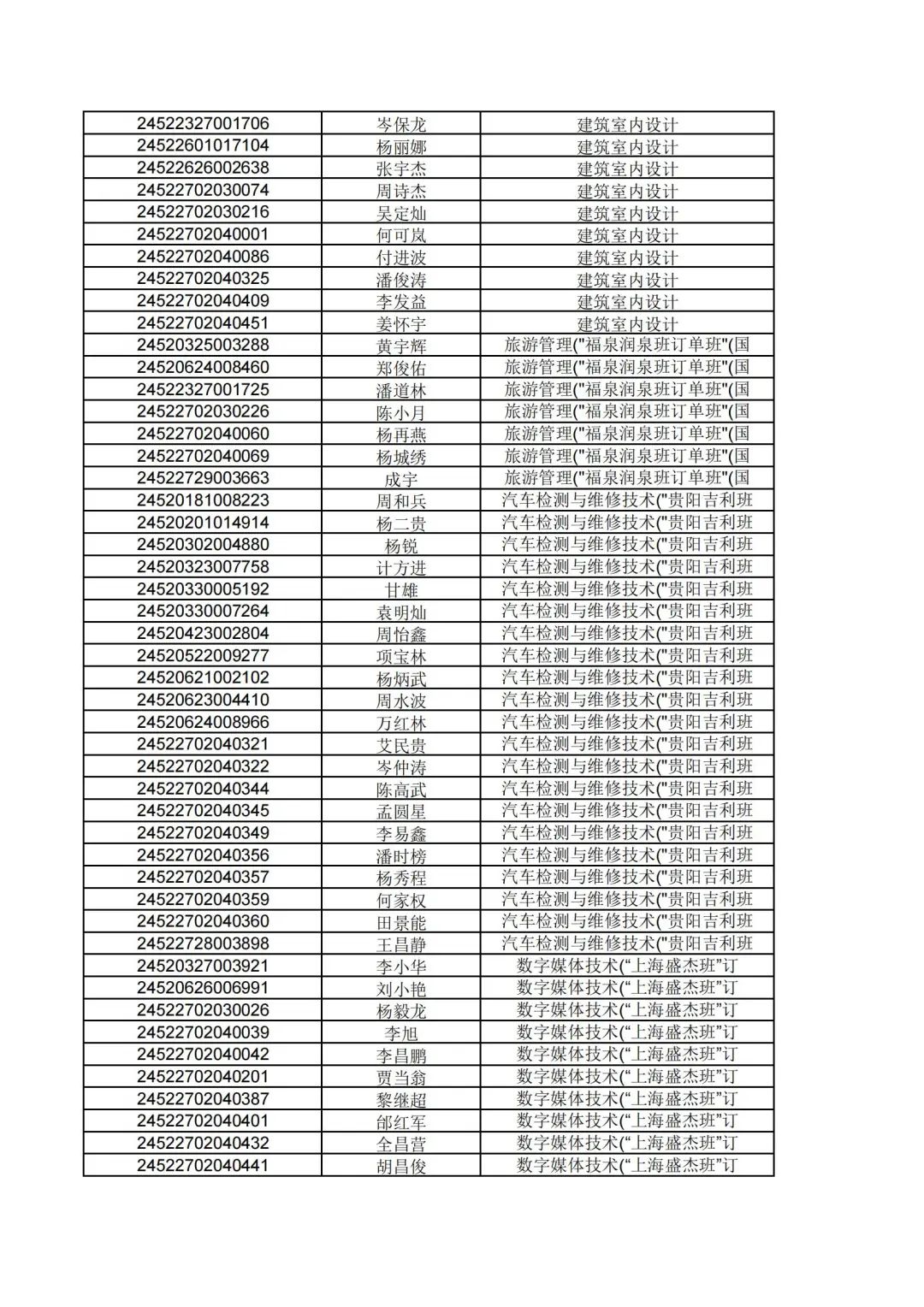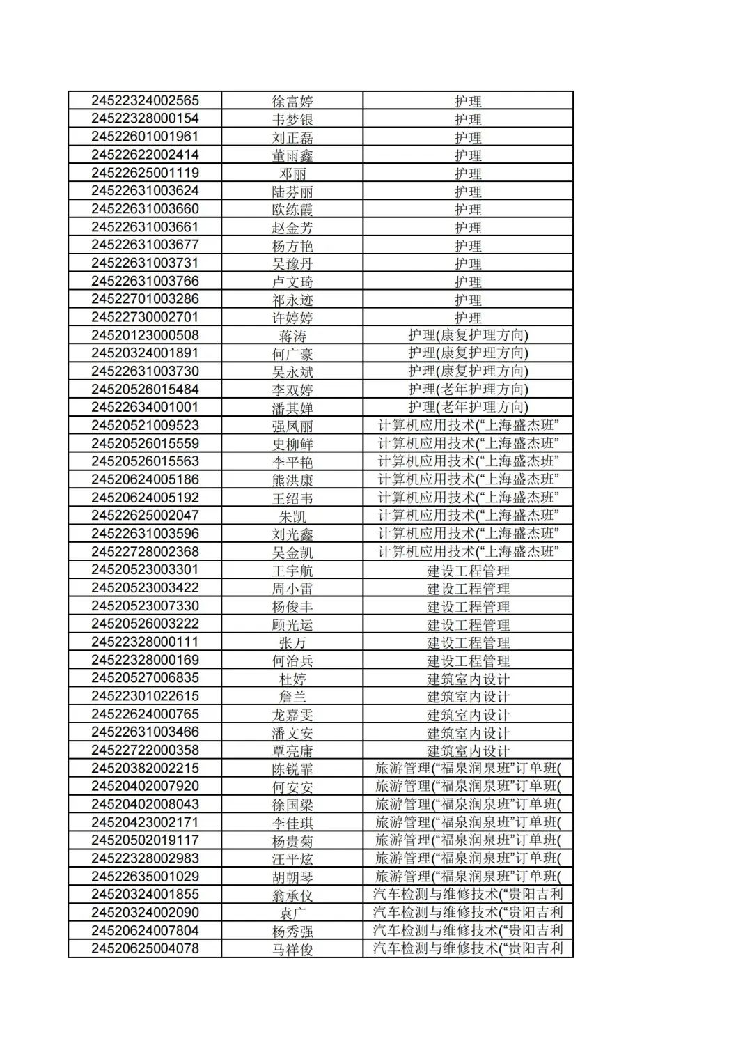根据贵州省2024年高职(专科)分类考试招生第一批拟录取名单公示,现将填报我院志愿经过报考资格审核合格,同时参加职业技能(适应性)测试合格的考生,按照"文化素质+职业技能"综合评价录取原则择优录取,名单公示如下: