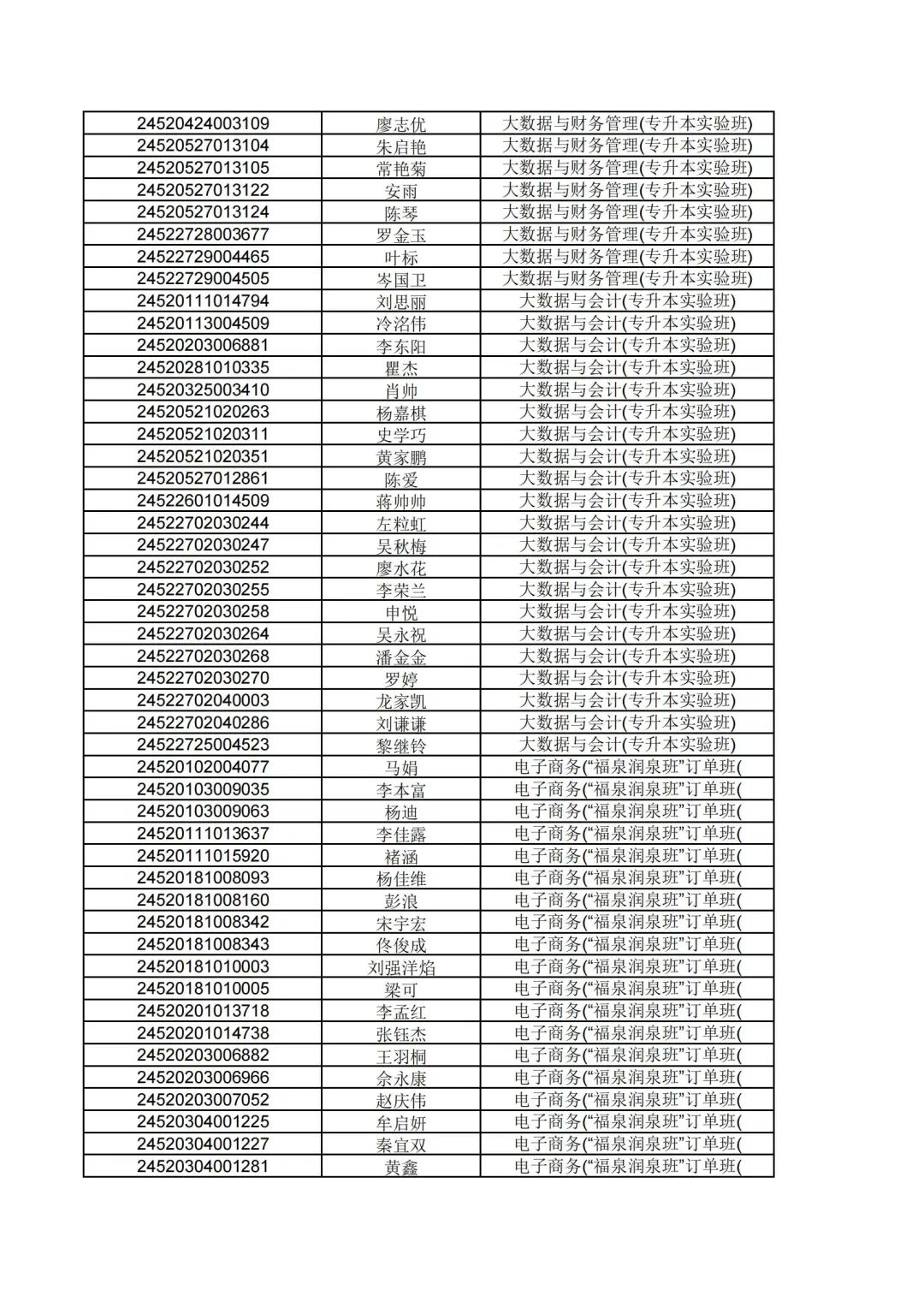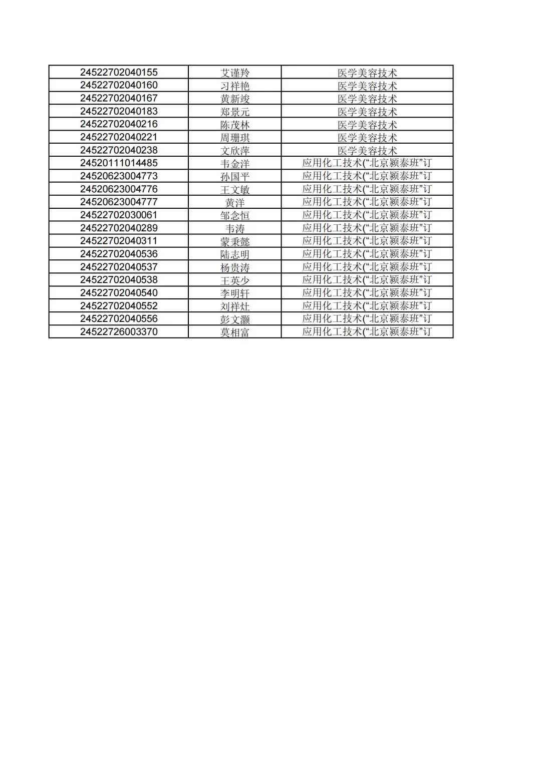 录取名单公示