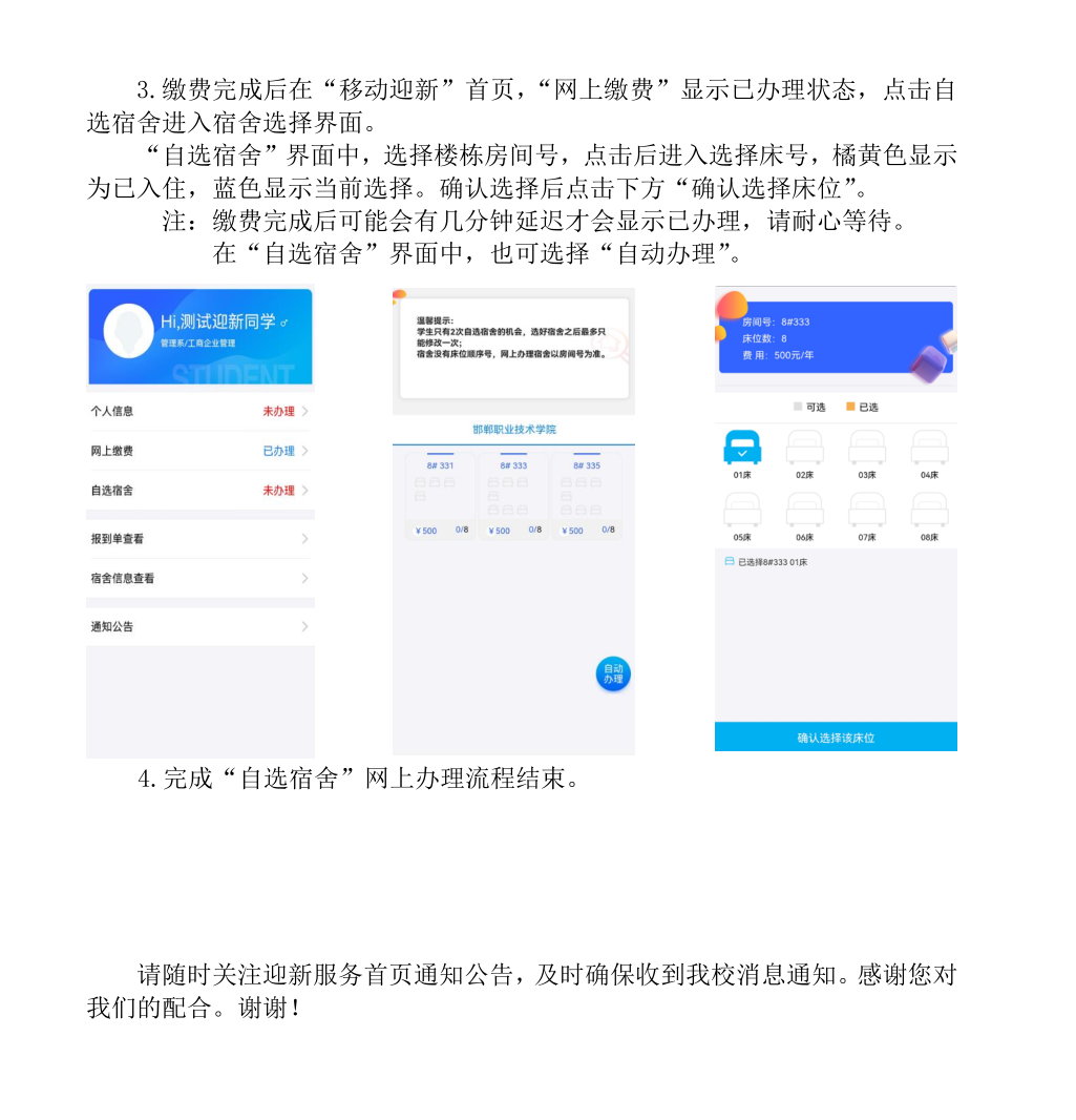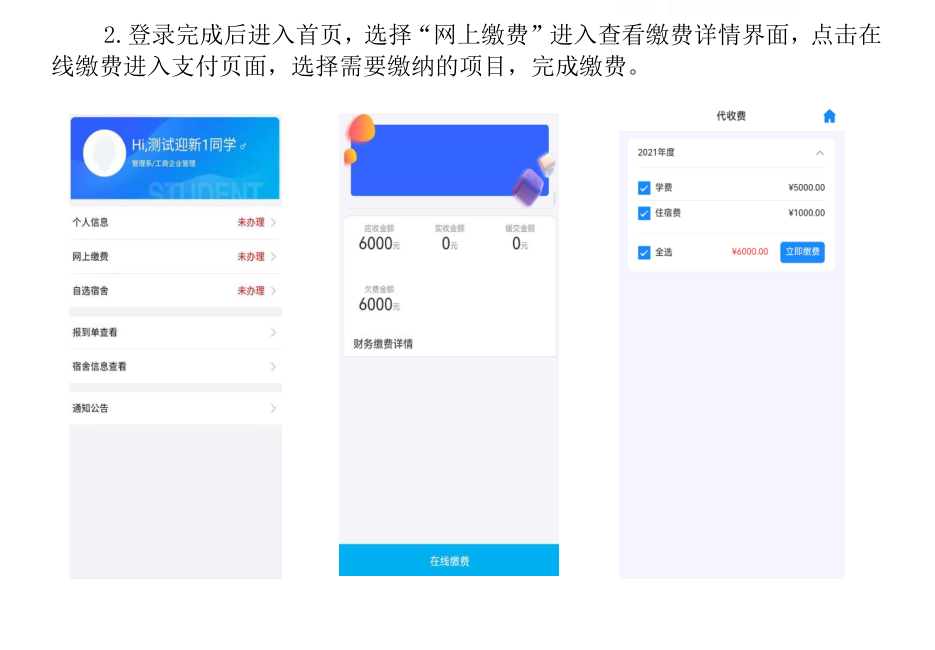 2021年新生线上缴费及自选宿舍说明