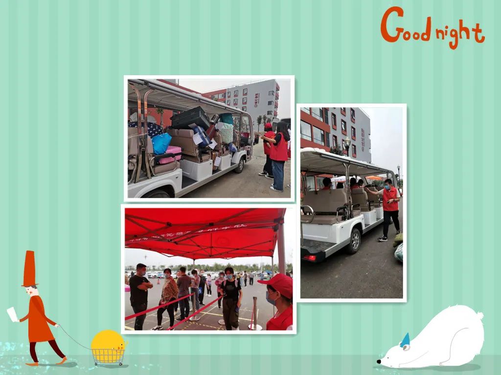 坚守疫情防控原则,火车站和汽车站安排接站点,热情的迎接远到而来的家长和学子,亲切的问候旅途的辛劳,一句句”你好”,一声声“欢迎”,一张张笑脸,减轻学子们离家的恐惧和担忧;帮助家长搬运行李,减轻旅途的劳累。