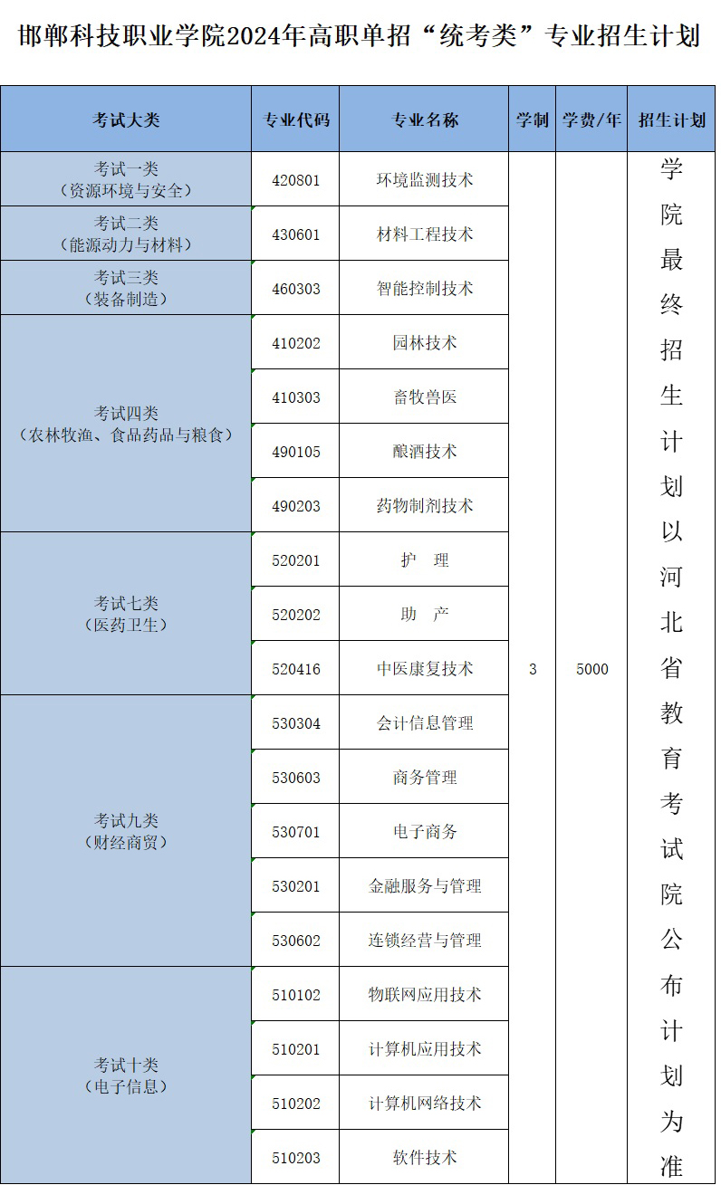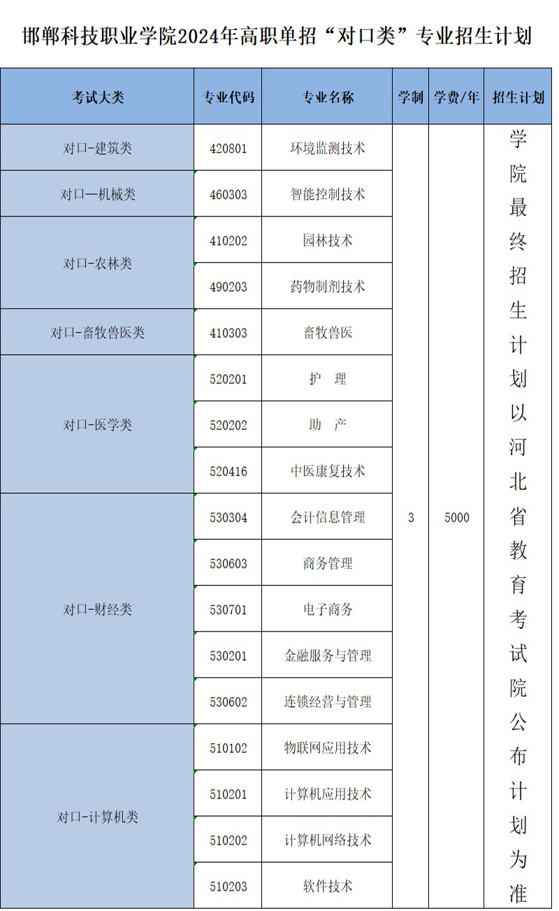 待单招报名结束后,根据报名情况拟定分专业招生计划,详见河北省教育考试院公布的《2024年河北省普通高职院校单独考试招生计划》。