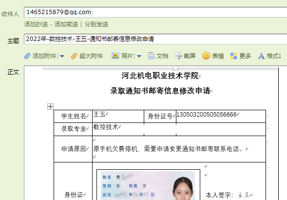 附件:河北机电职业技术学院录取通知书邮寄信息修改申请