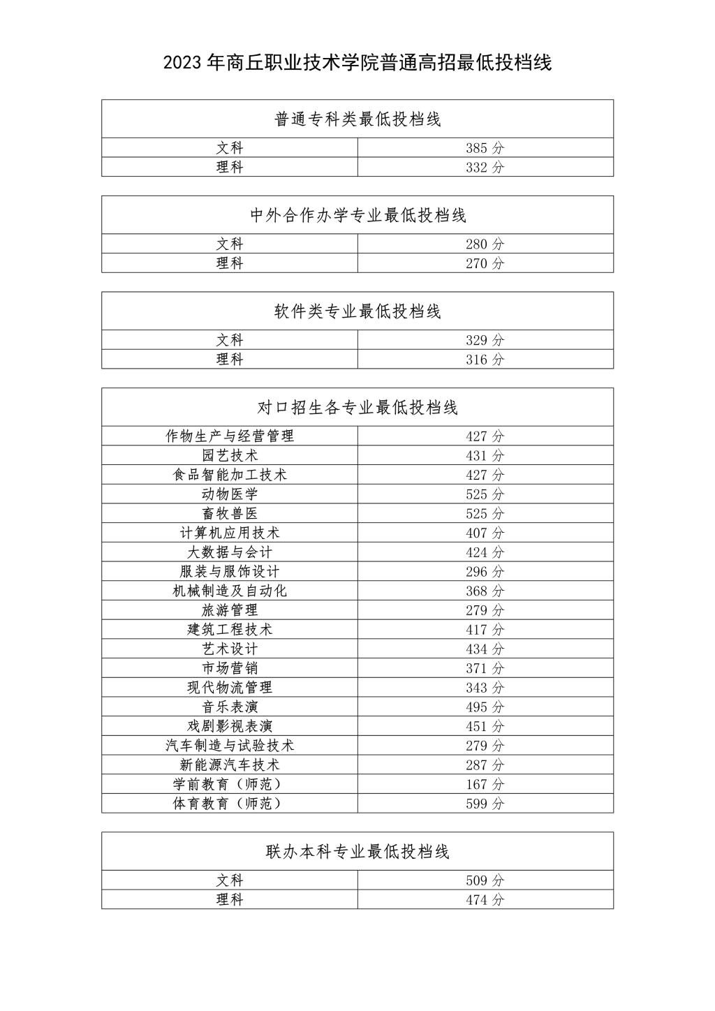 ★2023年商丘职业技术学院普通高招各类别最低投档线