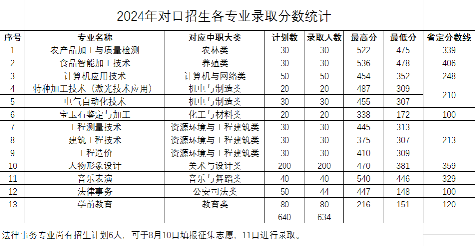 2024年我院对口招生各专业录取分数统计