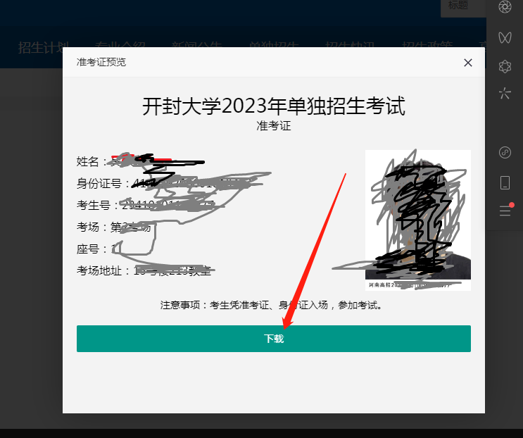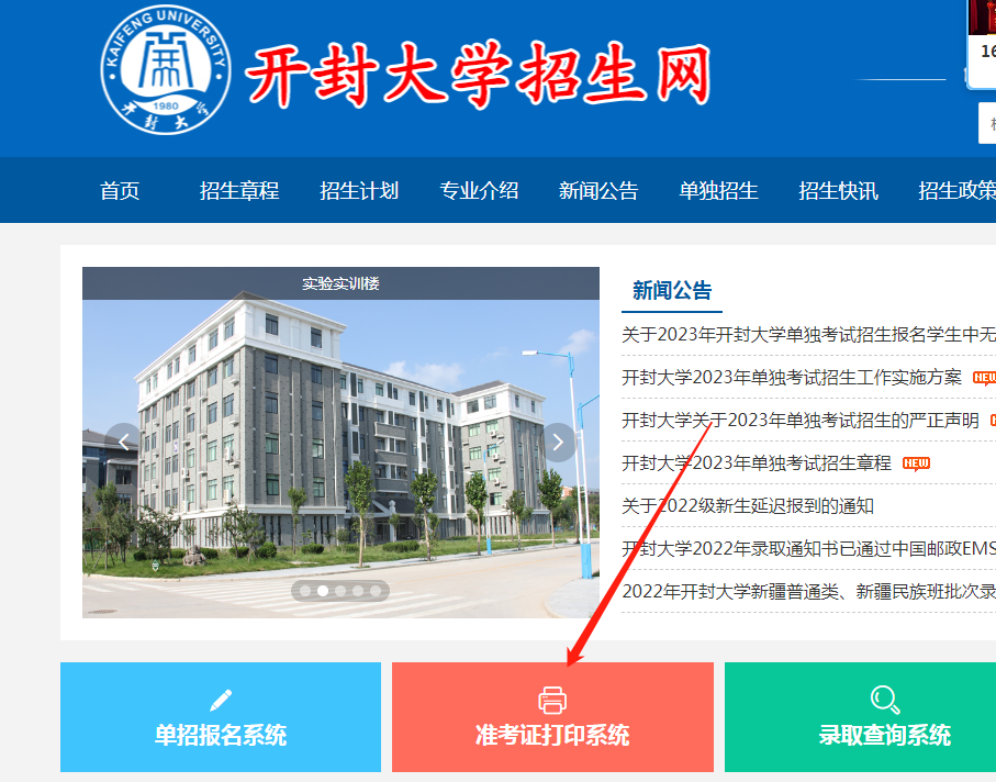 (1)登录开封大学招生网(http://www2.kfu.edu.cn/zs/);(2)点击准考证打印系统; (3)输入姓名、考生号、身份证号; (4)点击查询;(5)点击下载,下载的图片打印即可。 注意:准考证开放打印时间为4月6日早上8点。