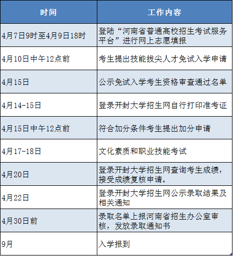 开封大学单招招生工作时间安排表