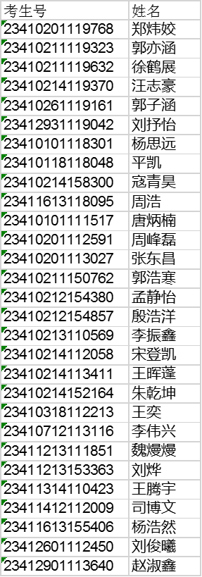 根据河南省教育考试院提供的报考开封大学2023年单独考试招生的学生名单,以下29名考生无高中学业水平考试成绩等级,按照《开封大学2023年单独考试章程》,此29名考生除了需要参加学校组织的职业适应性测试外,还需要参加文化素质考试。
