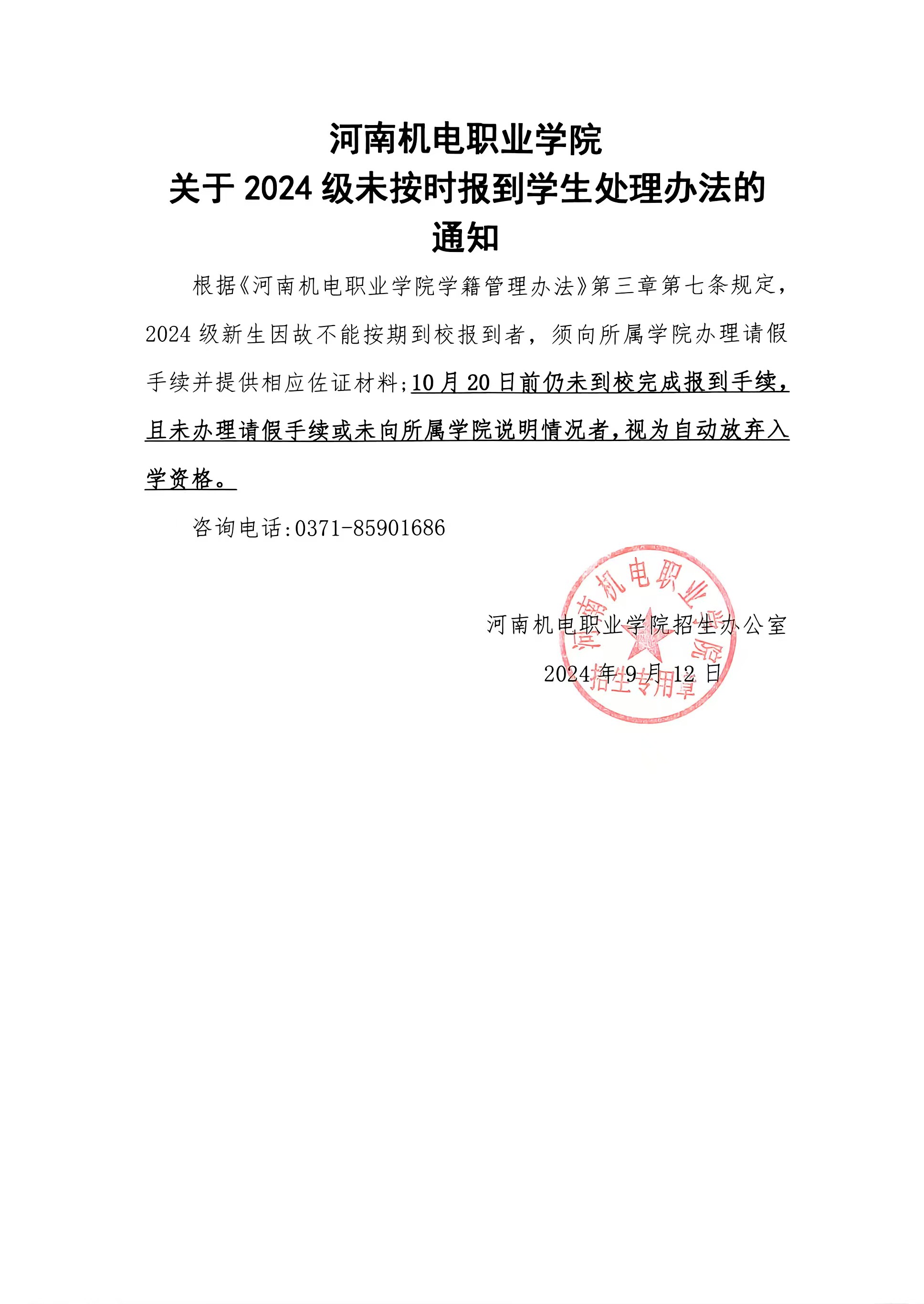2024级未按时报到学生处理办法的通知