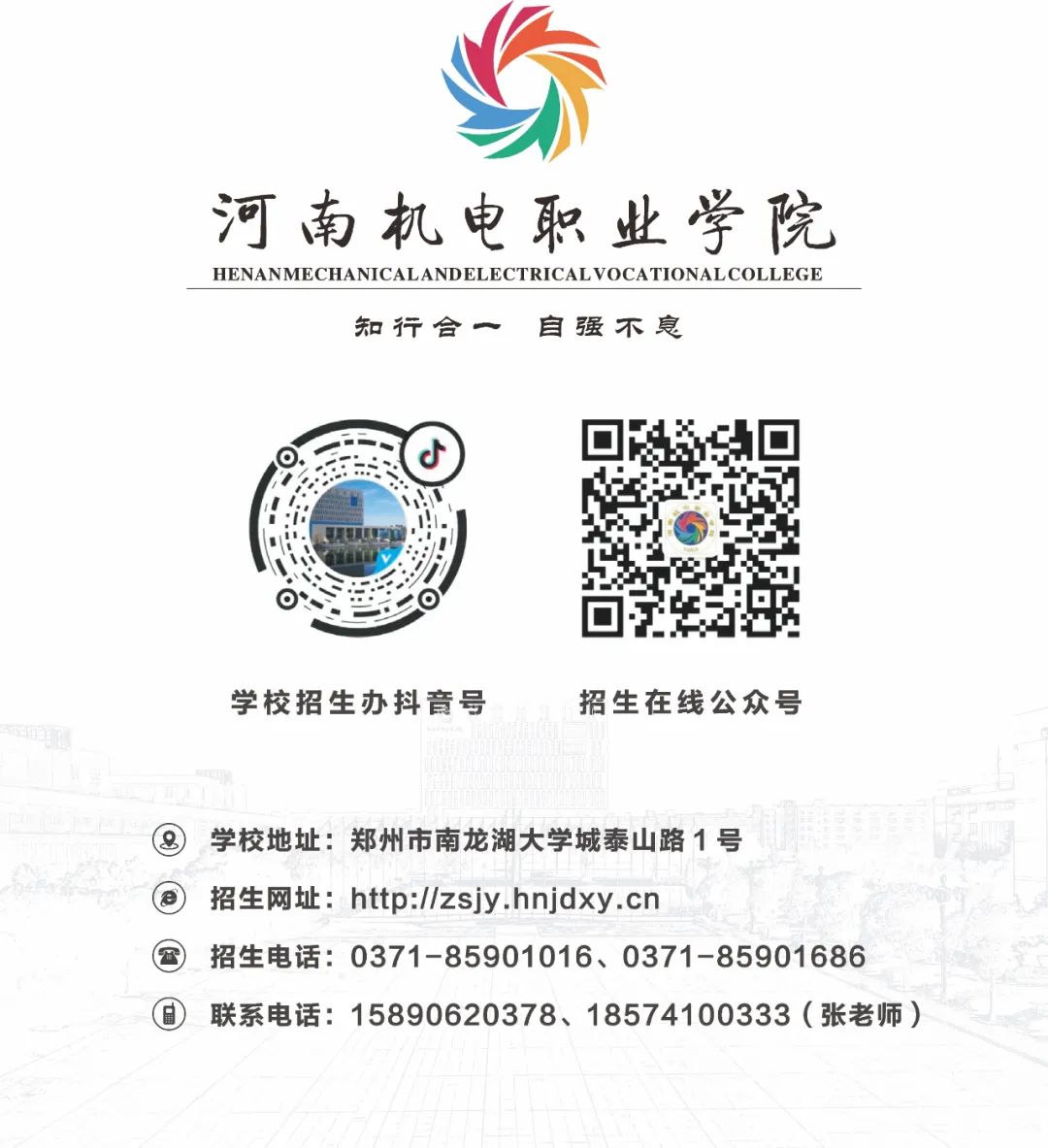 河南机电职业学院是河南省人民政府主办、省教育厅直属的公办全日制高等职业院校。学校始建于1953年,学校坐落于郑州南大学城。学校开设82个高职3年制专业,全日制在校生32000余人。专兼职教师1700余人,国家教学名师、省职业教育专家等16人,教授、副教授140人。学校设有院士工作站、博士后科研工作站3个,国家、省级创新团队9个,建立省级超硬材料重点实验室等科创平台15个。