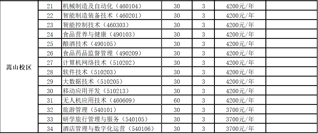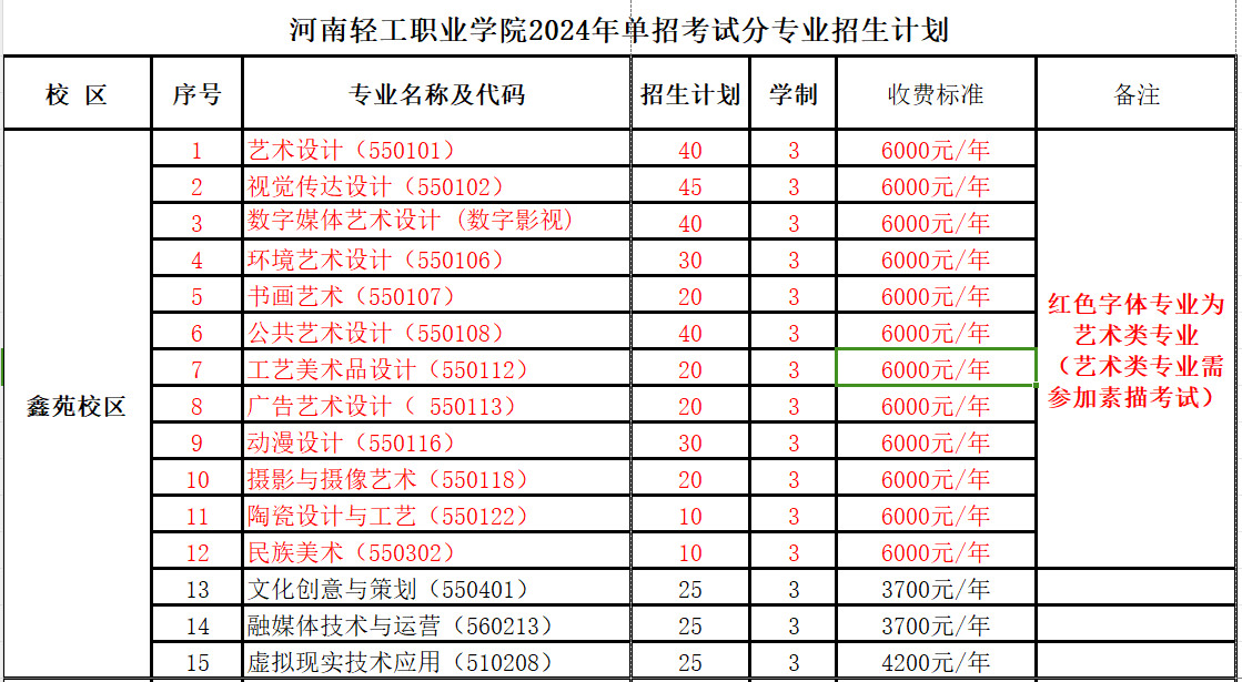河南轻工职业学院2024年单招招生专业及计划