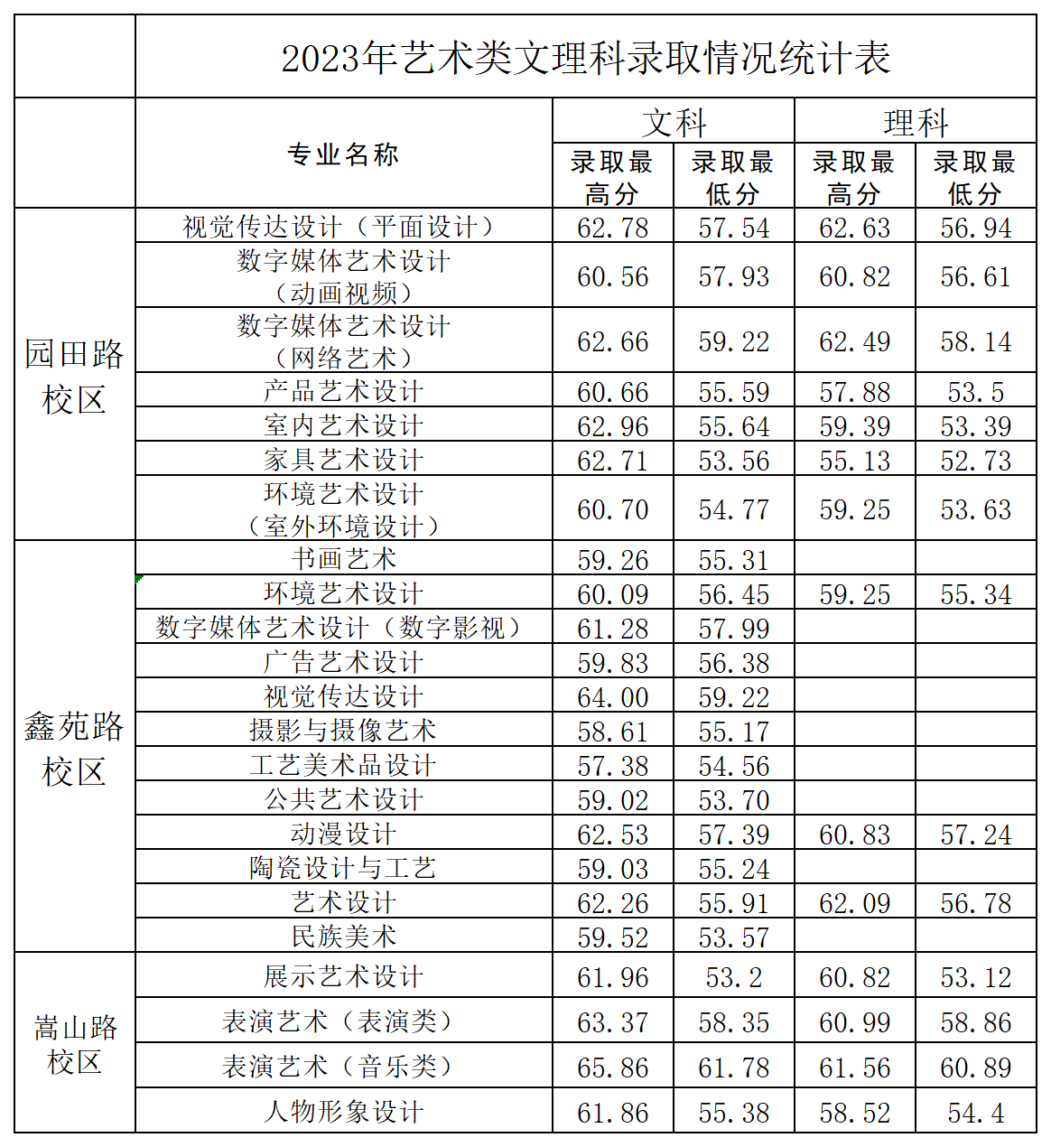 河南轻工职业学院2023年艺术专科和对口类录取分数线