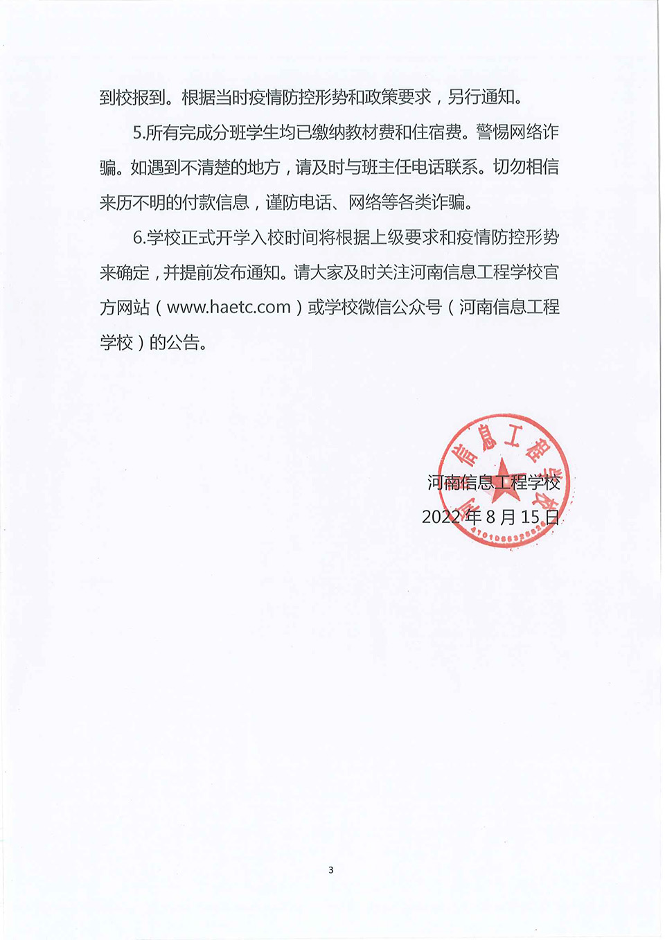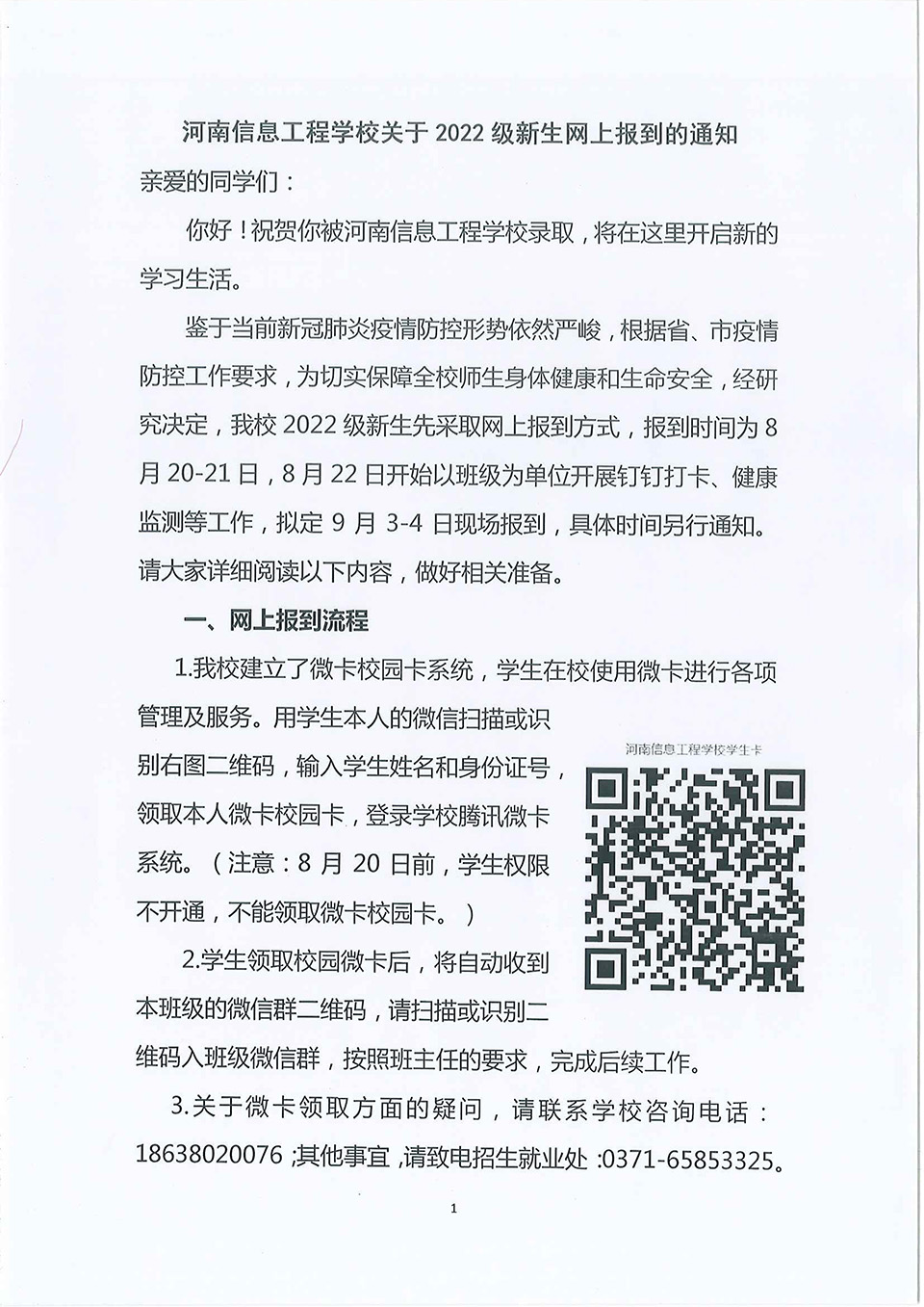 PDF下载: 河南信息工程学校关于2022级新生网上报到的通知