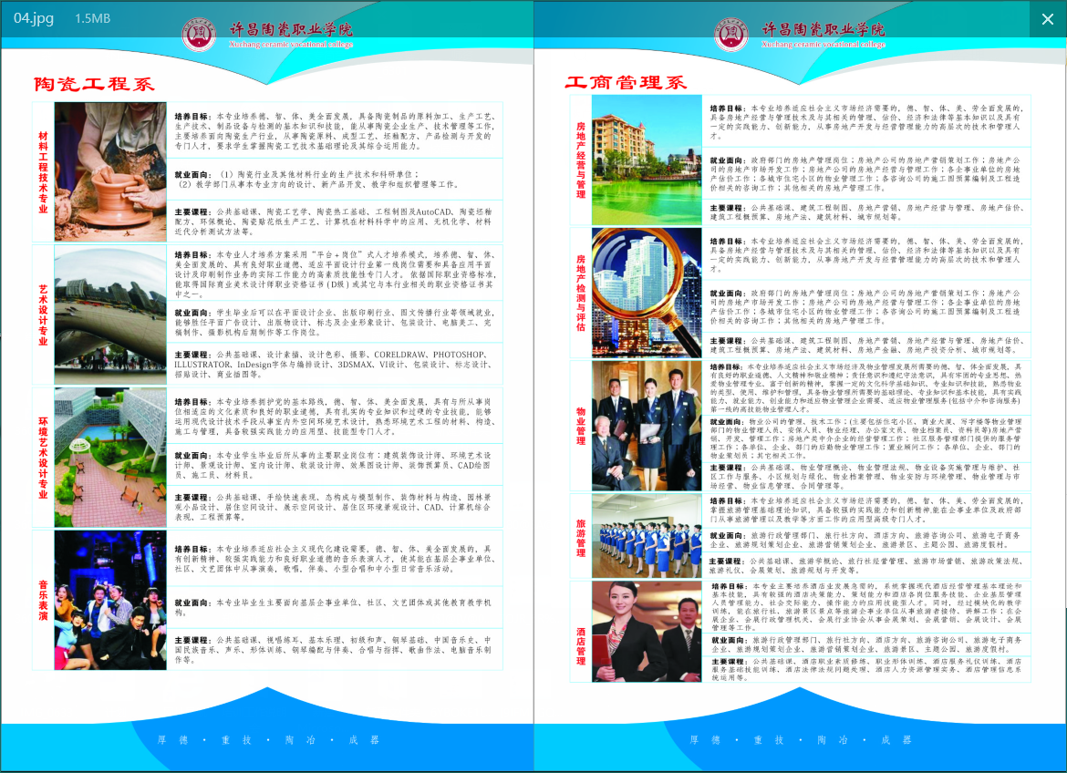 许昌陶瓷职业学院是经河南省人民政府批准,国家教育部备案的一所全日制普通高等专科院校。现在许昌陶瓷职业学院开始正式招生啦,招生代码6301,一起来看看招生简章吧!