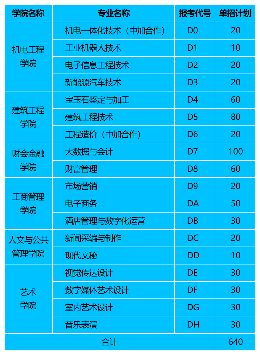 2021年单招计划