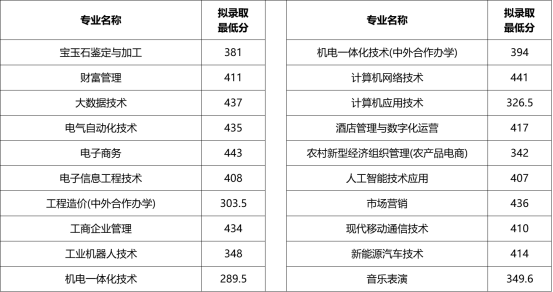 各专业录取最低分见下表: