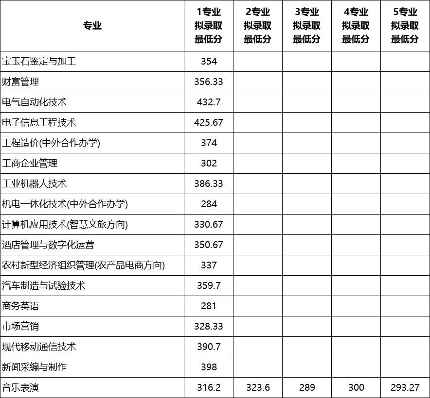各专业录取最低分见下表: