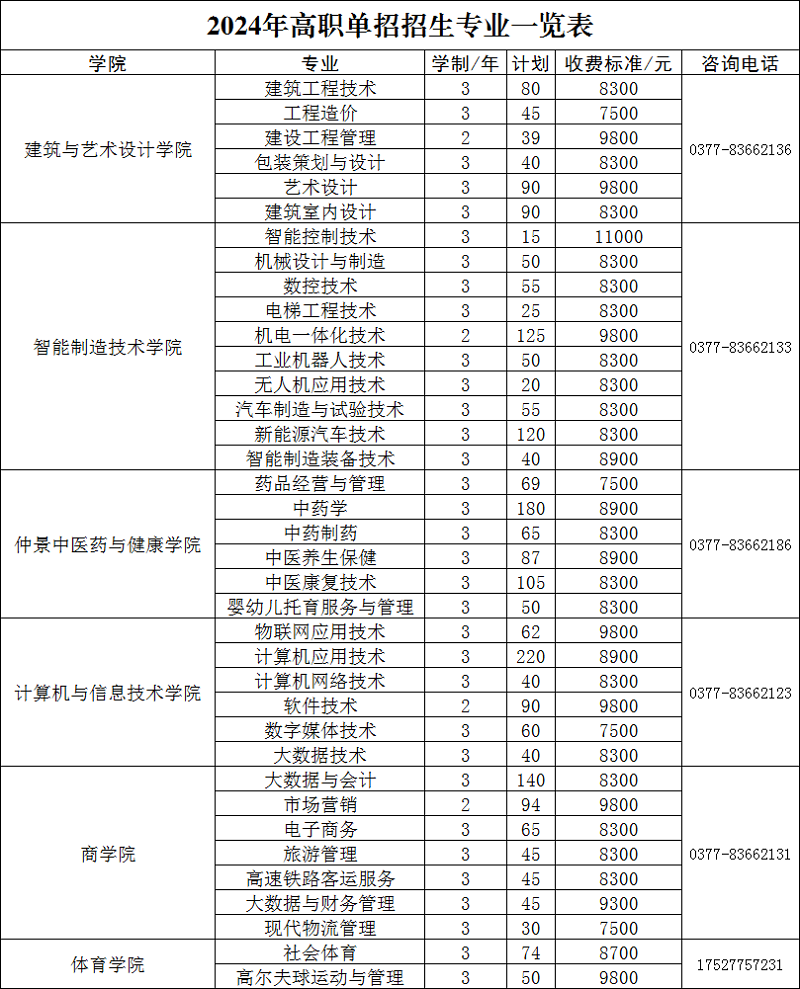参加高职单招的考生统一进行网上填报志愿,填报时间为2024年3月19日9时至3月21日18时,考生网上志愿填报请登录“河南省普通高校招生考试服务平台”(https://pzwb.haeea.cn/)进行志愿填报。考生必须在规定时间内完成志愿填报,填报时仅限填报我校一所学校和5个专业志愿,同时需要填写是否同意调剂,考生可以在规定的填报志愿时间内进行不超过两次的志愿修改,考生志愿以网上最后一次保存的志愿为准,填报时间截止后将无法补报和更改。