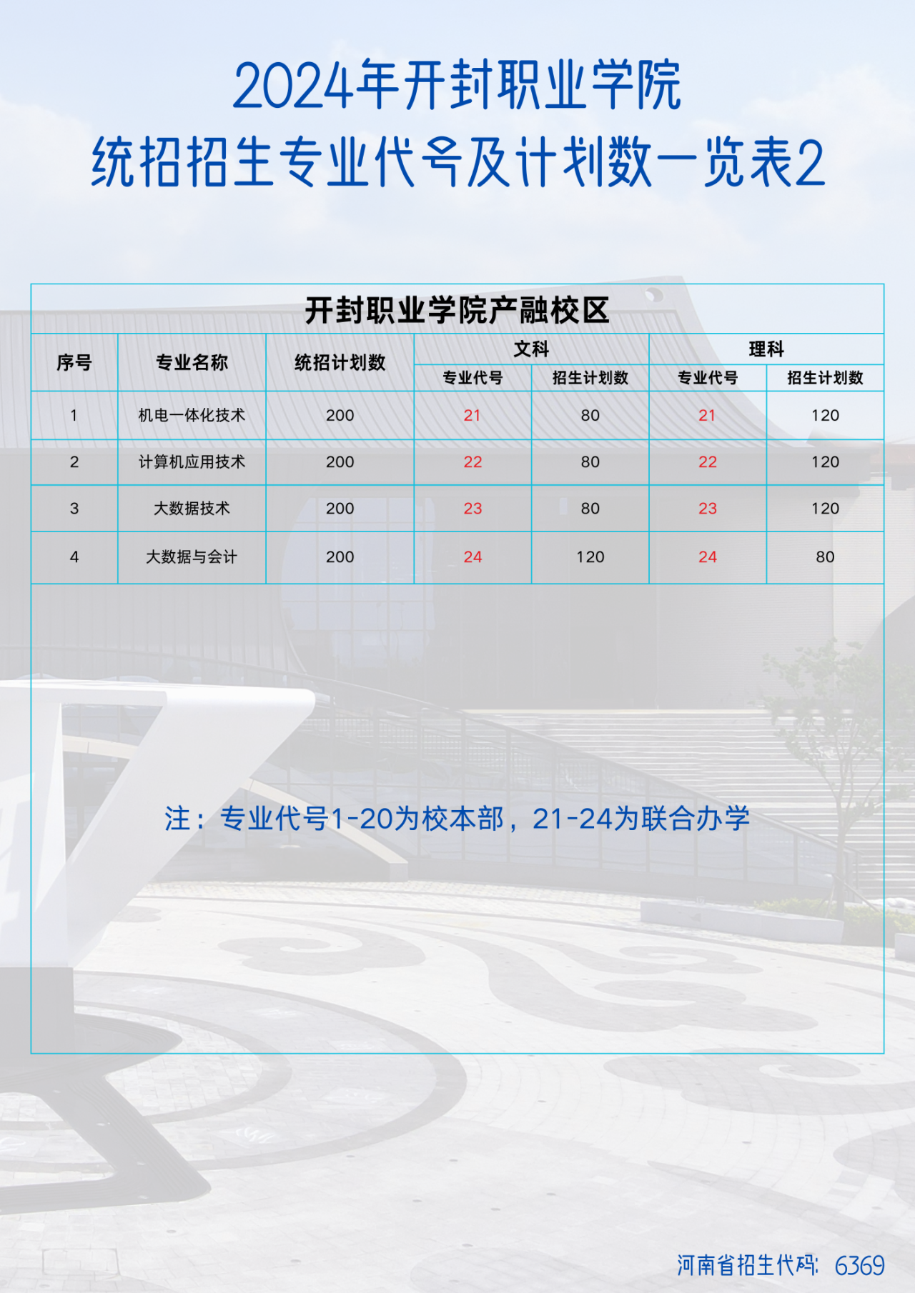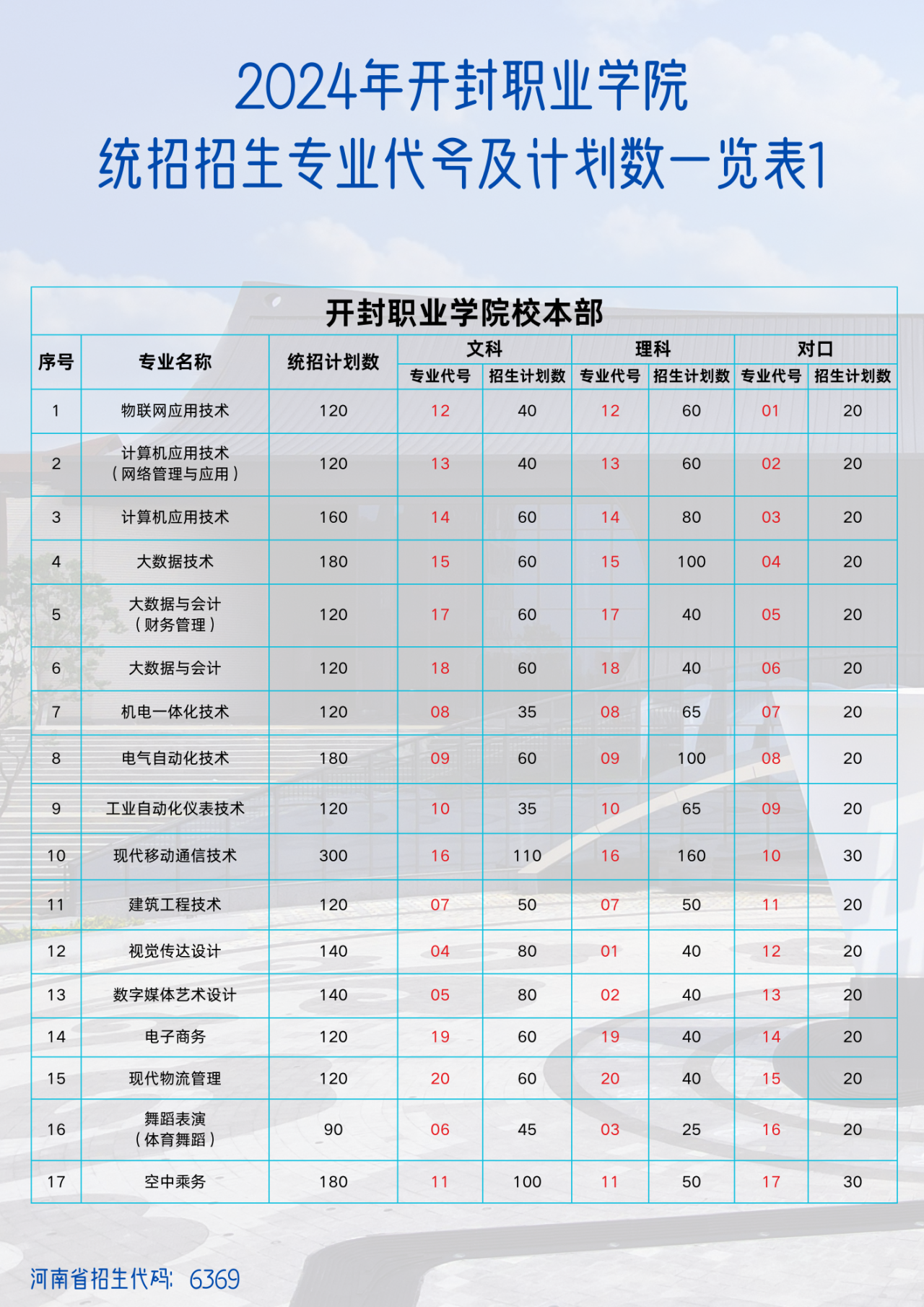 2024年我校统招共分两个校区招生。校本部投放17个专业2450人,产融校区投放4个专业800人,具体计划数见下表。