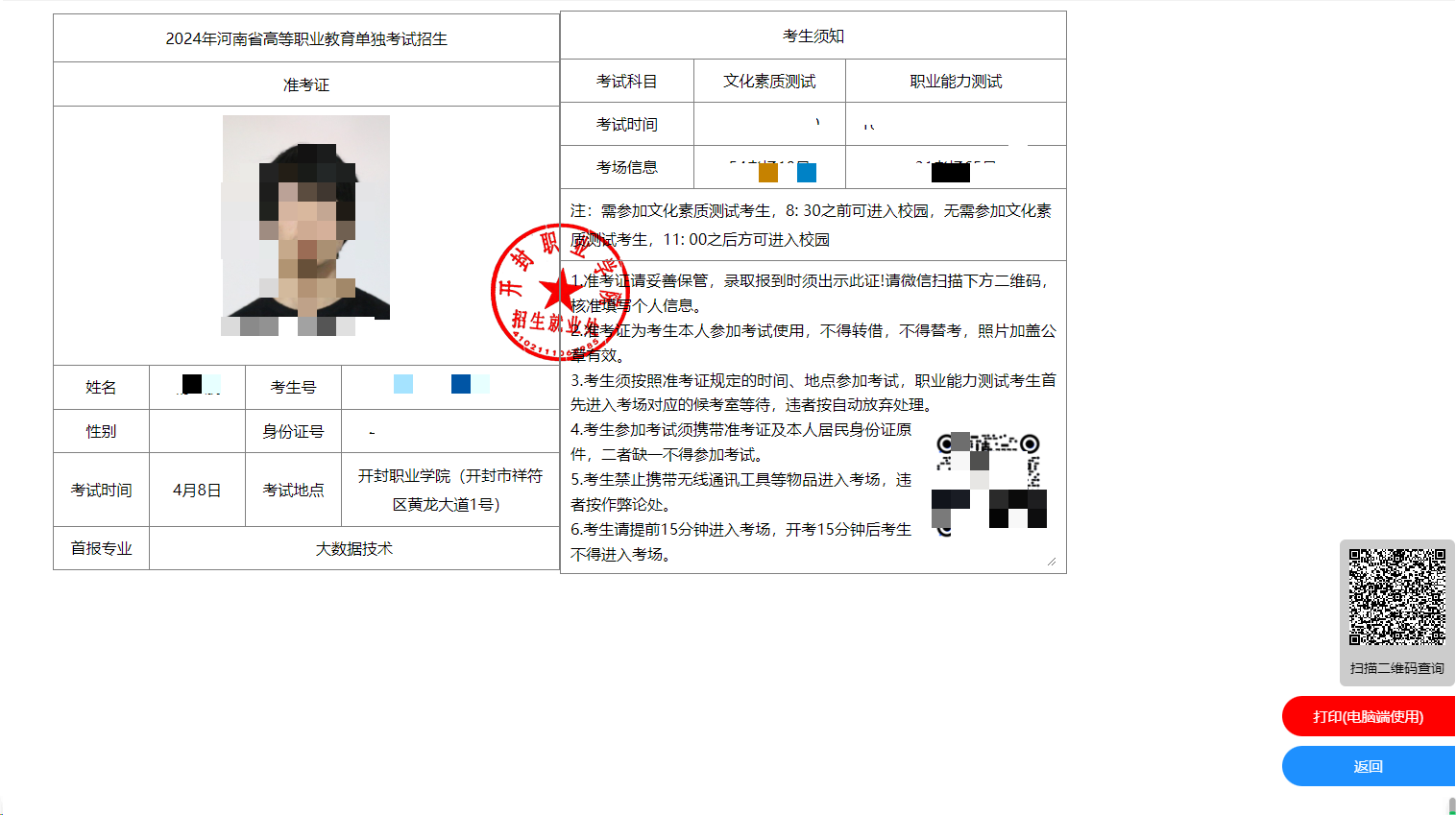 第一步:请于2024年4月4日8:00-4月7日18:00登录开封职业学院官网(网址:http://www.kfvc.edu.cn/),点击飘窗,打印准考证。