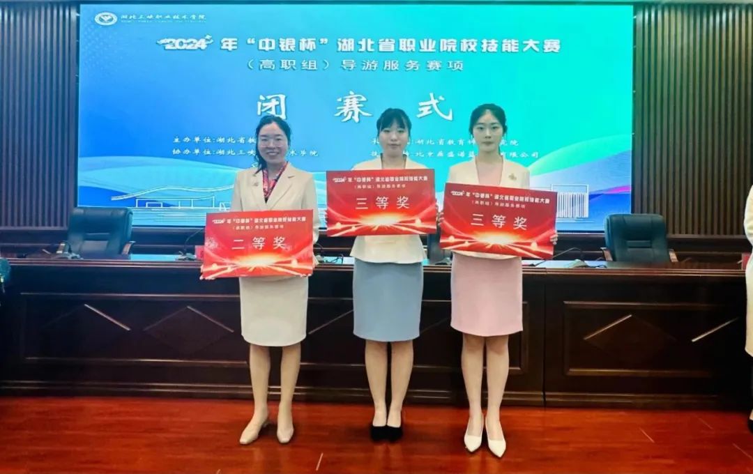 08技能竞赛2023-204年,学生参加湖北省职业院校导游服务技能大赛荣获一等奖1个,二等奖2个,三等奖2个,参加湖北省互联网+大赛获得银奖1个,铜奖1个,获奖比率高达85%。2021年参加汉江流域导游大赛,获得第一名和技术能手的称号。