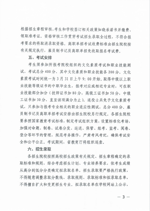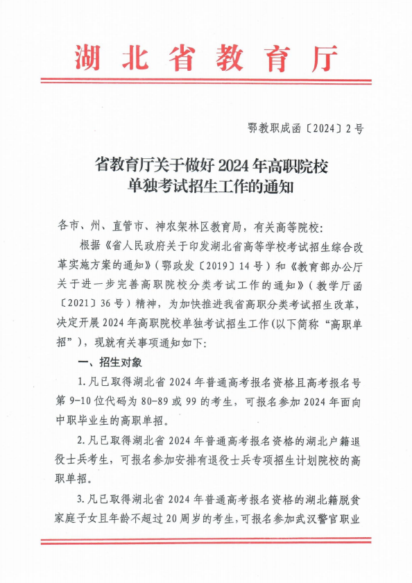 省教育厅关于做好2024年高职院校单独考试招生工作的通知
